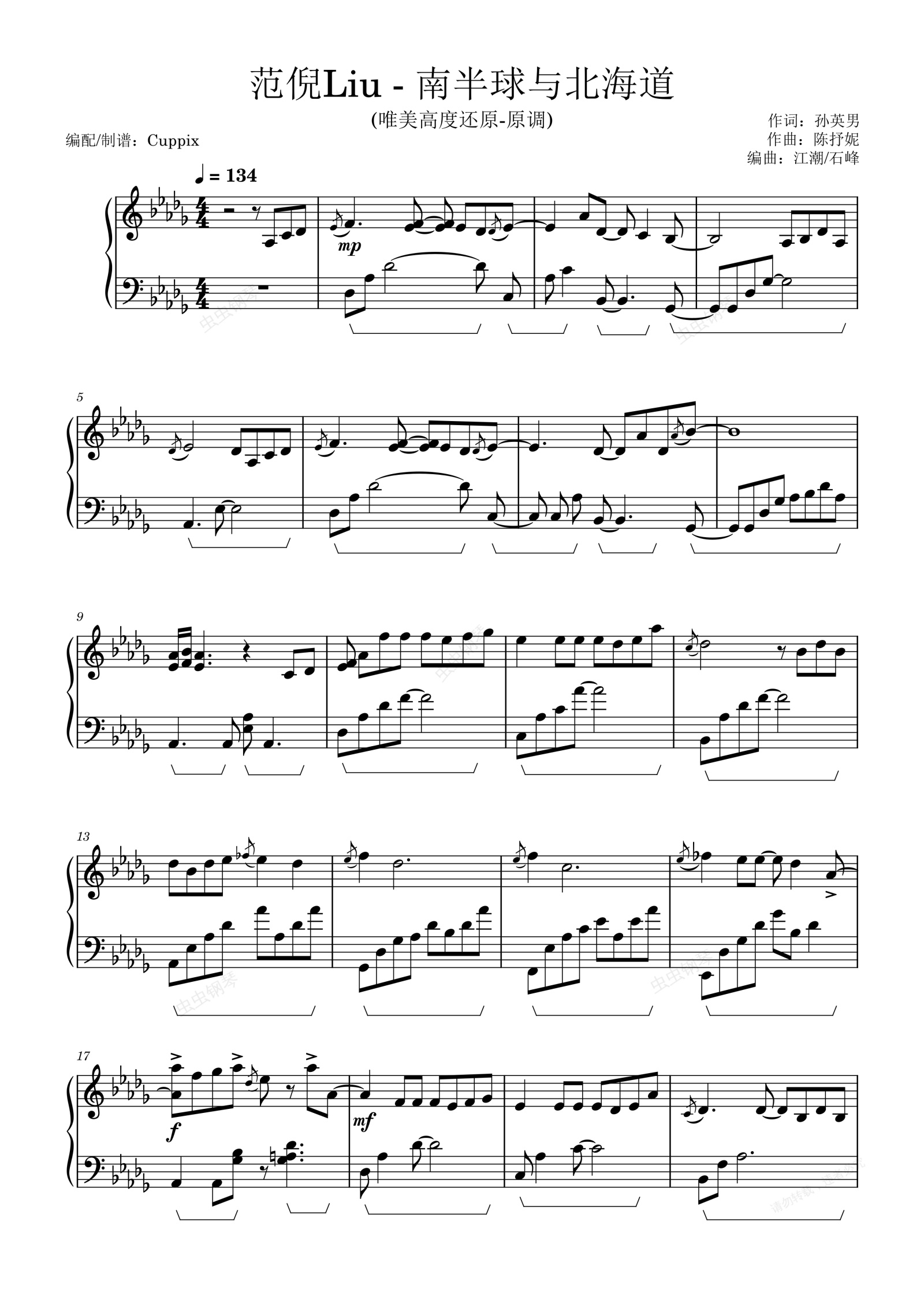 钢琴谱:《南半球与北海道》Cuppix编配-唯美高度还原-原调(范倪Liu)