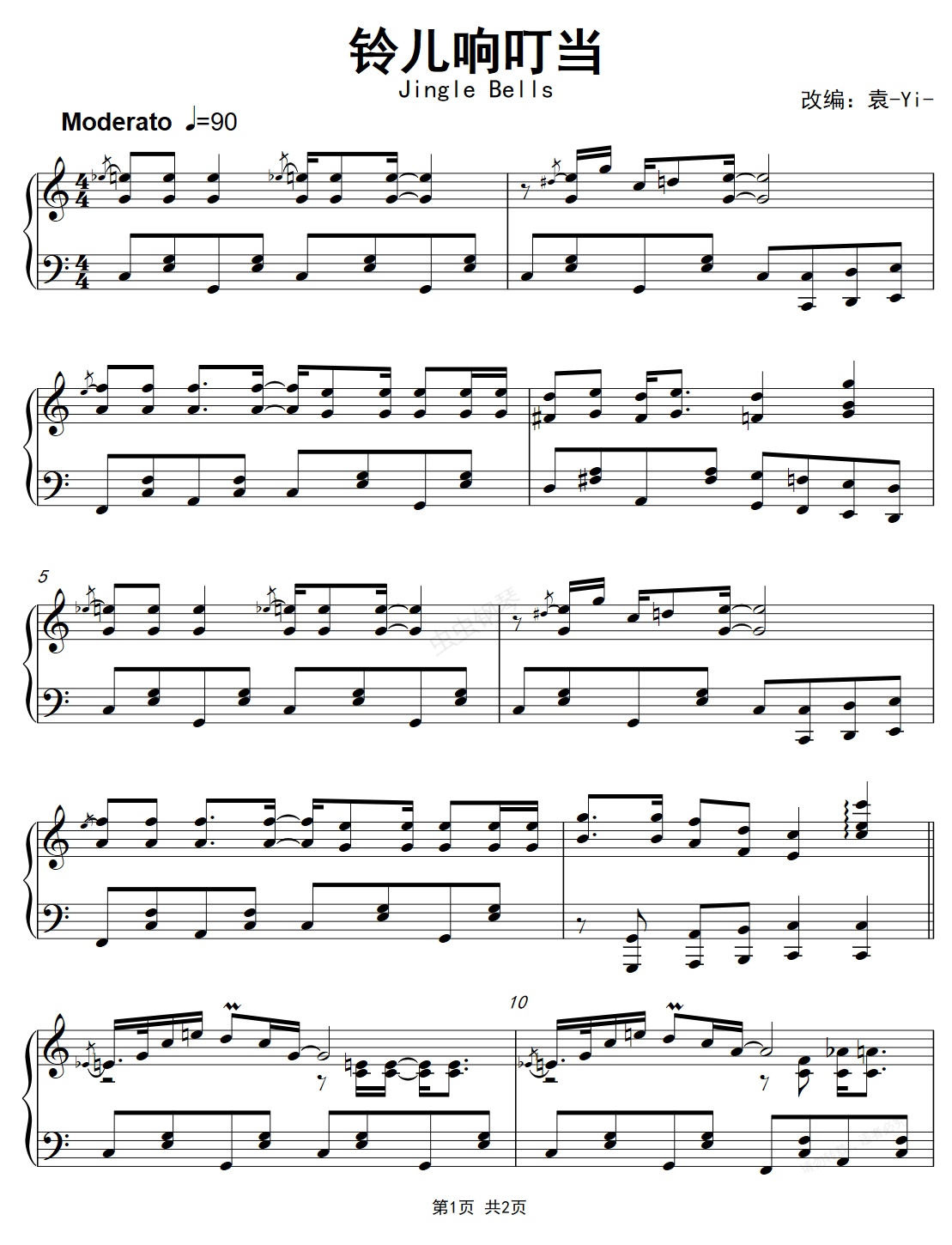 钢琴谱:铃儿响叮当Jngle Bells爵士风格改编(袁-Yi-) C大调 欢快版