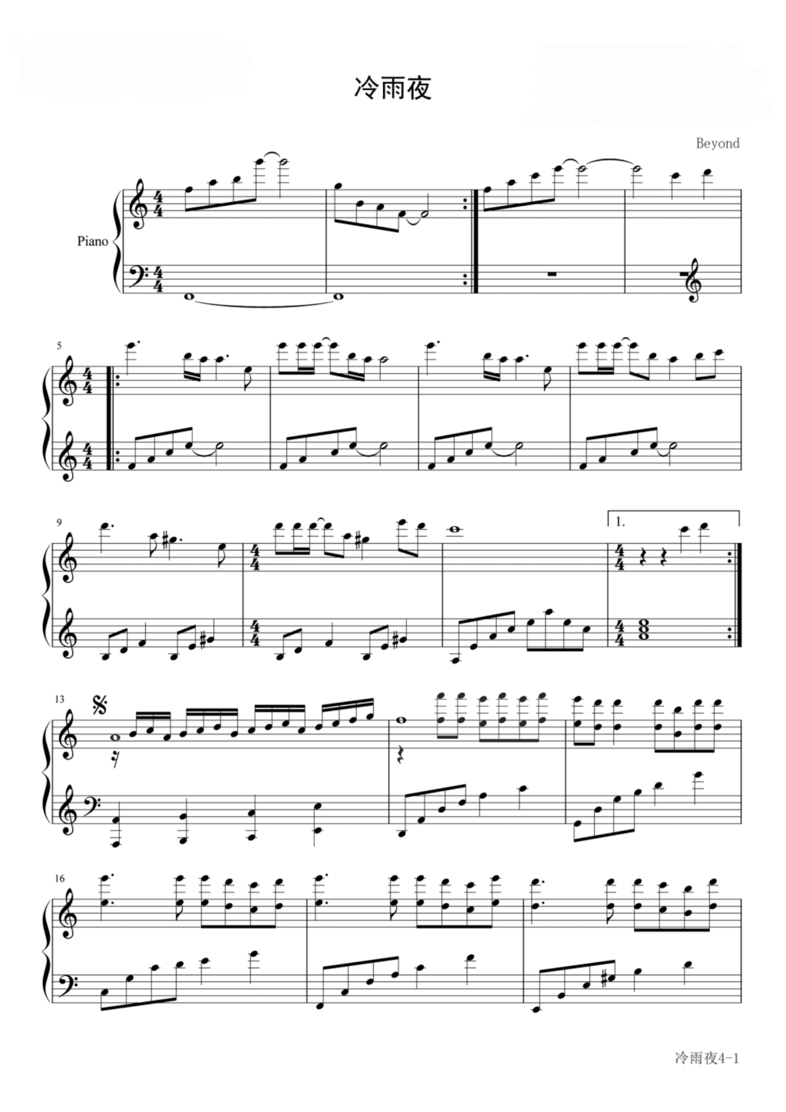 钢琴谱:冷雨夜