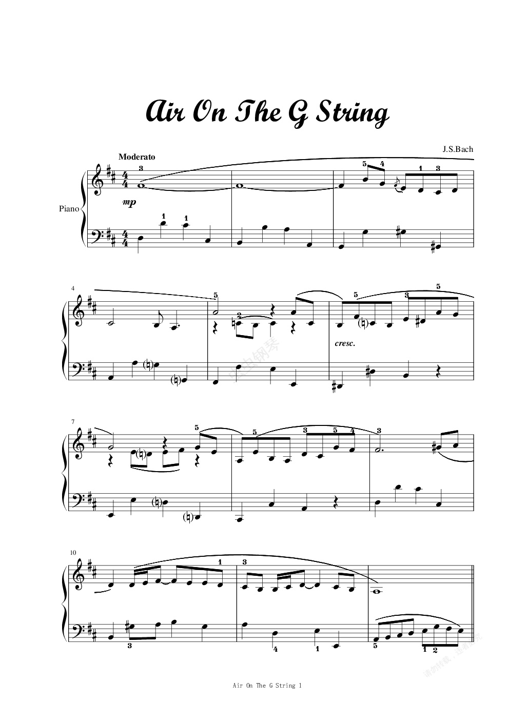 G弦上的咏叹调 ,此曲为巴赫(  Bach)《第三号管弦乐组曲》(  No's 1 and 3 #09  No. 3 BWV 1068 in D major - Air)的第二乐章主题,充满诗意的旋律美,使此曲成为脍炙人口的通俗名曲。