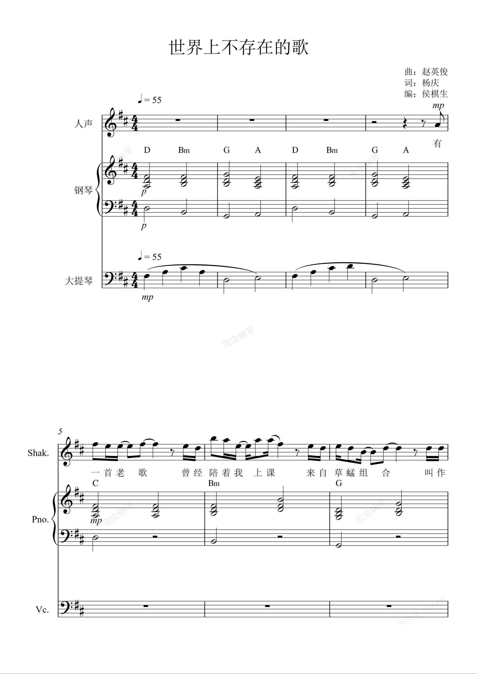 钢琴谱:世界上不存在的歌-陈奕迅版 弹唱谱