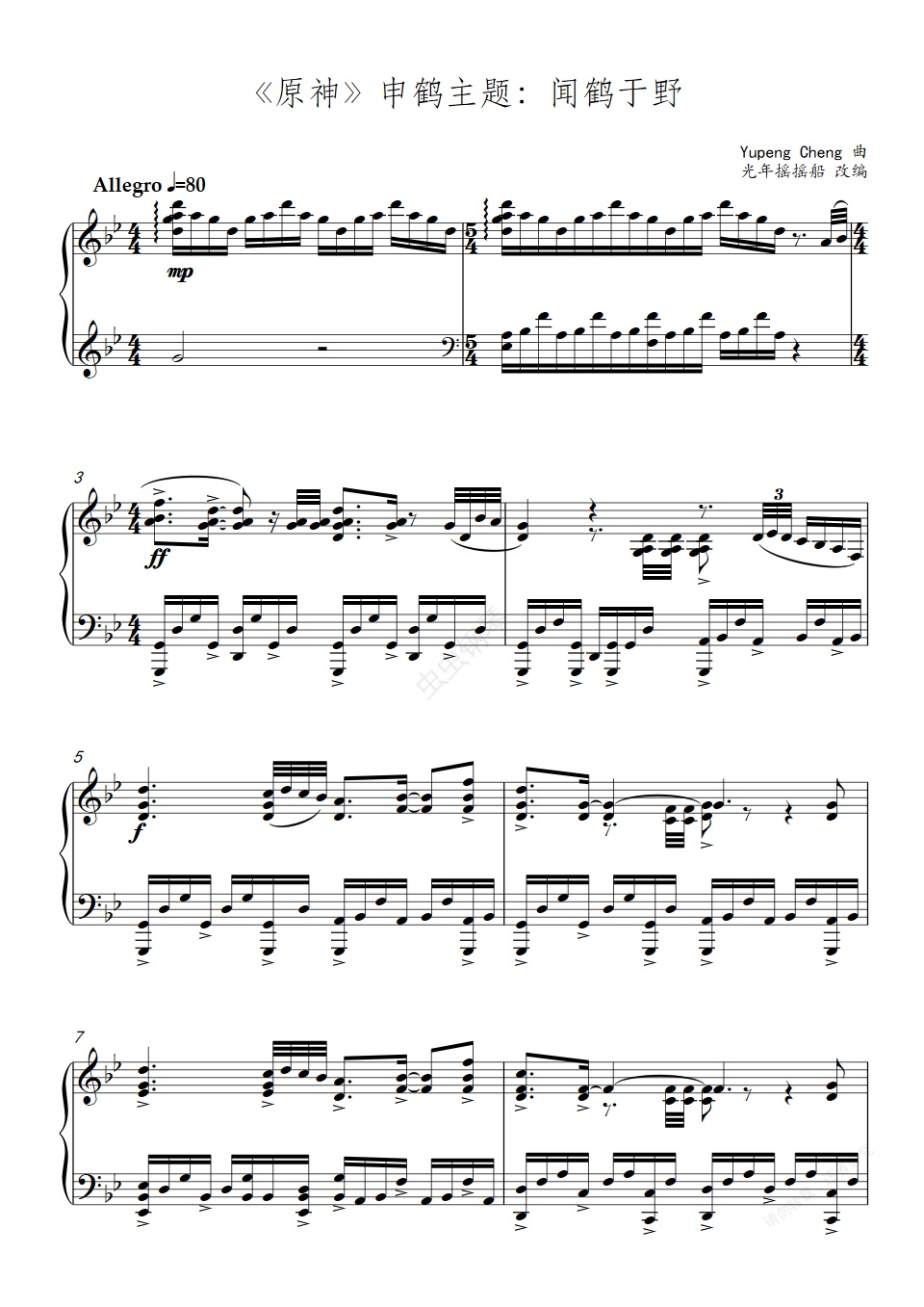 钢琴谱:原神钢琴版(申鹤:闻鹤于野)角色演示主题音乐
