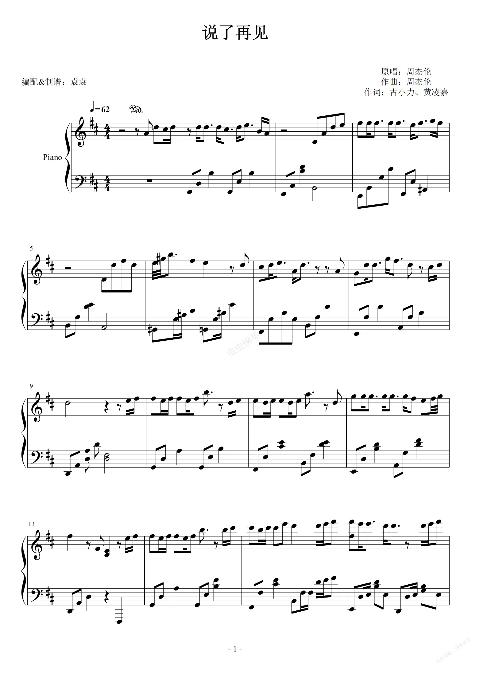 钢琴谱:说了再见 电影海洋天堂主题曲
