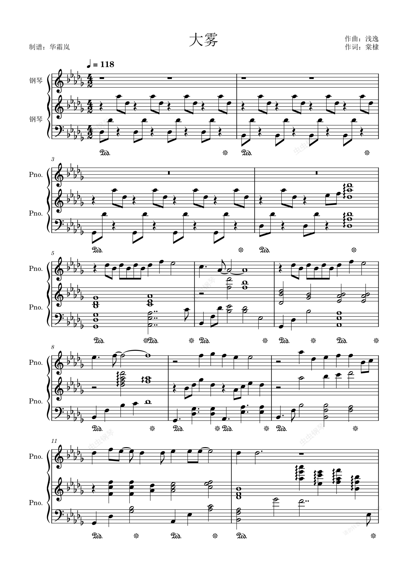 钢琴谱:大雾—弹唱版