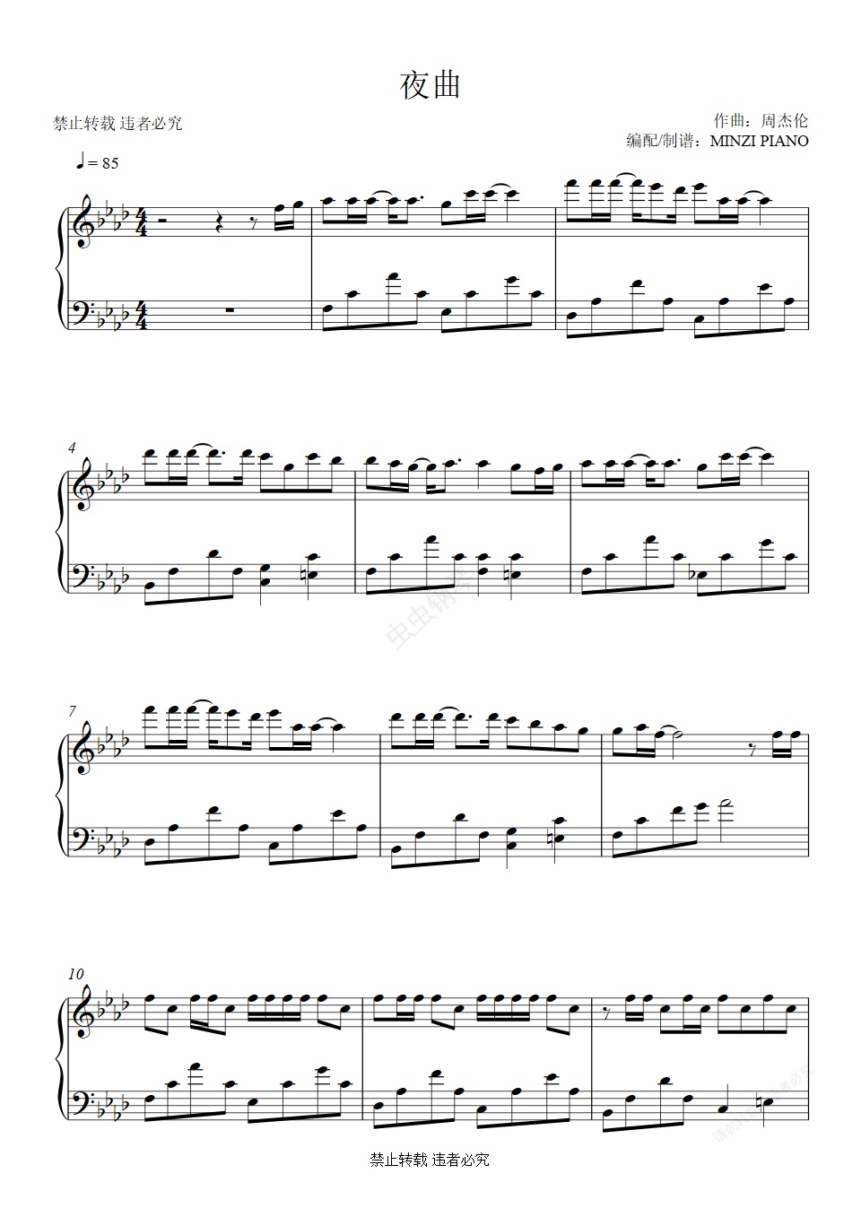 钢琴谱:周杰伦《夜曲》原调 好听易弹