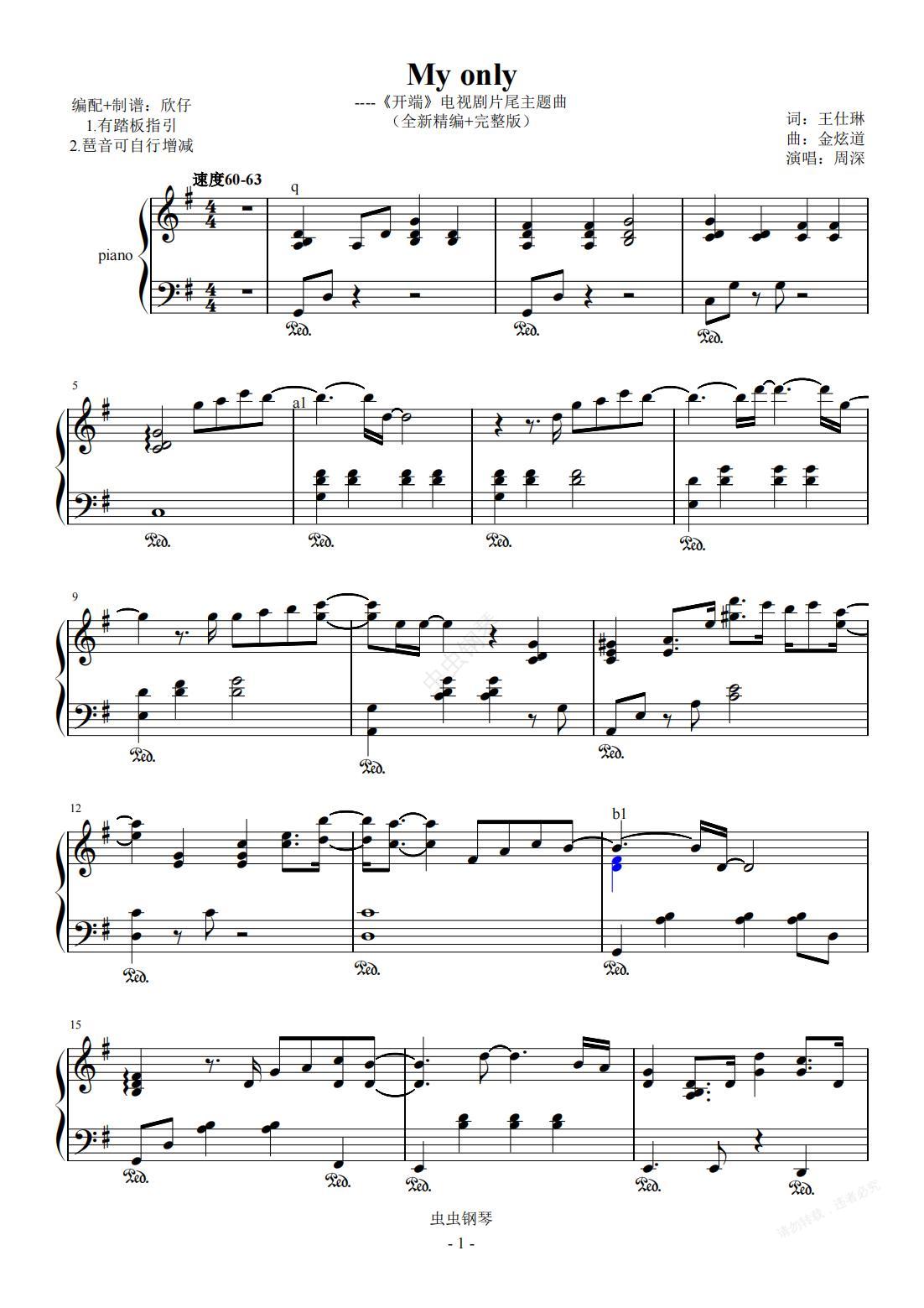 钢琴谱:周深-G《My Only》(《开端》原声带、全新精编+完整版)