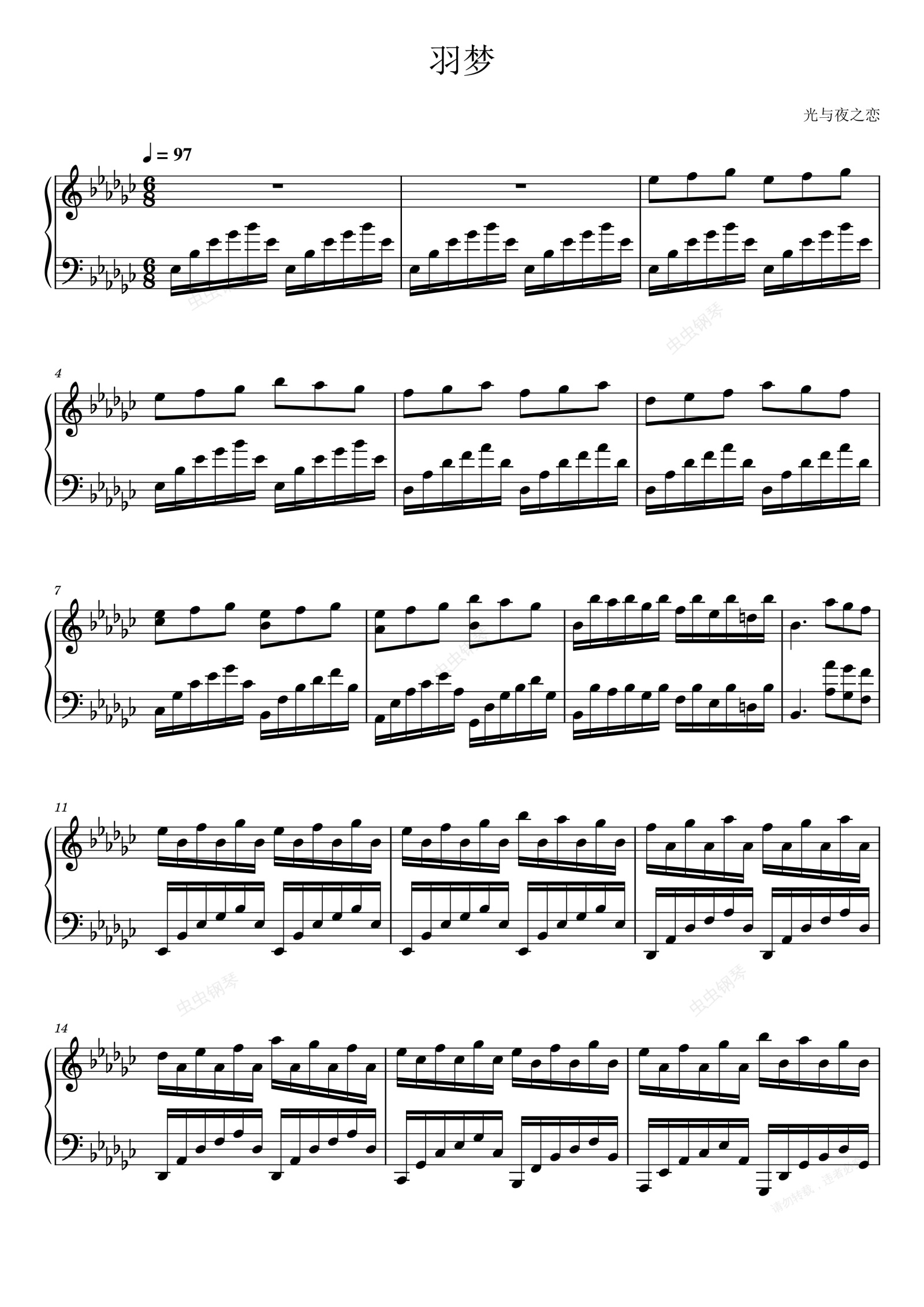 钢琴谱:光与夜之恋:羽梦(HARD)
