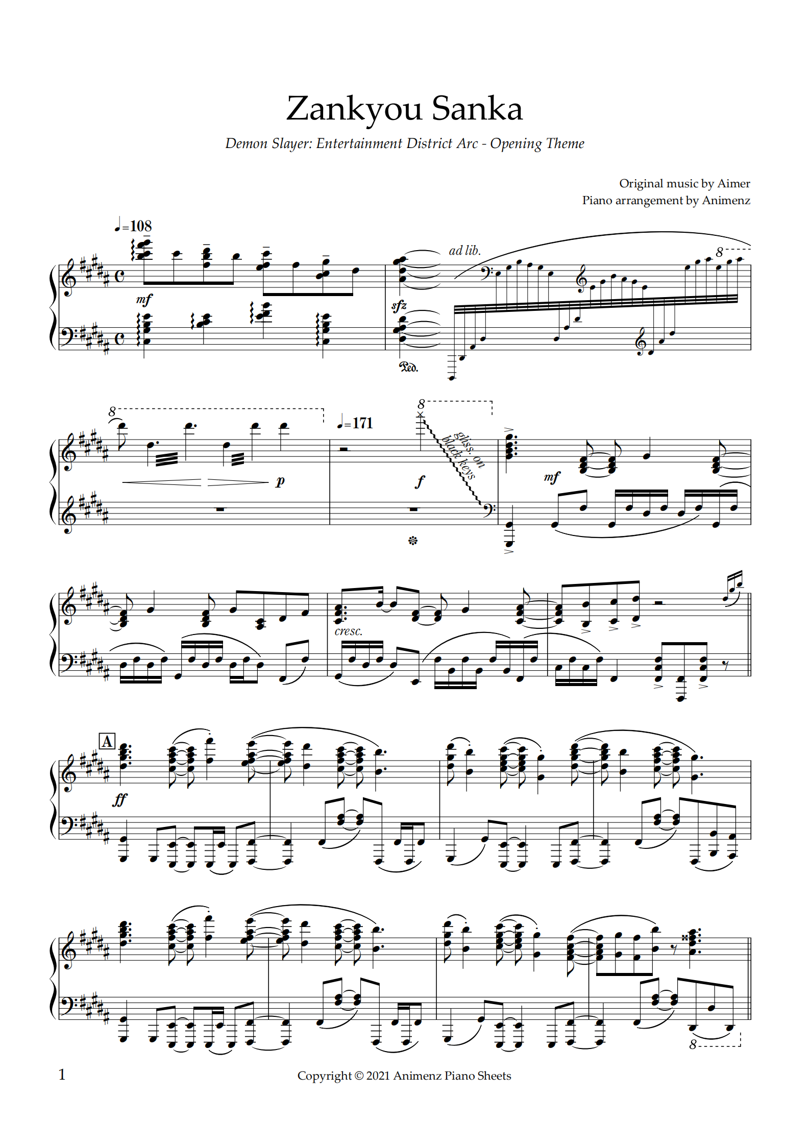 钢琴谱:残响散歌-animenz