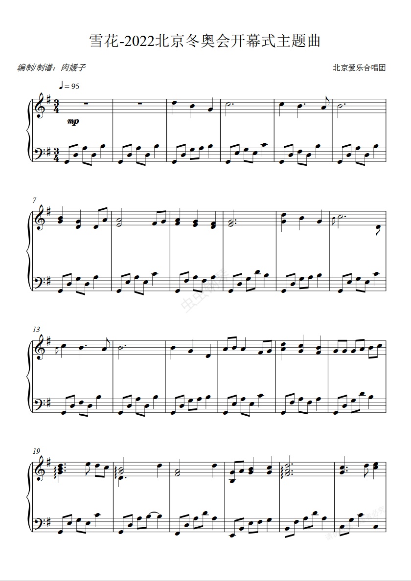 钢琴谱:雪花-2022北京冬奥会开幕式主题曲 【抒情版+极高还原】