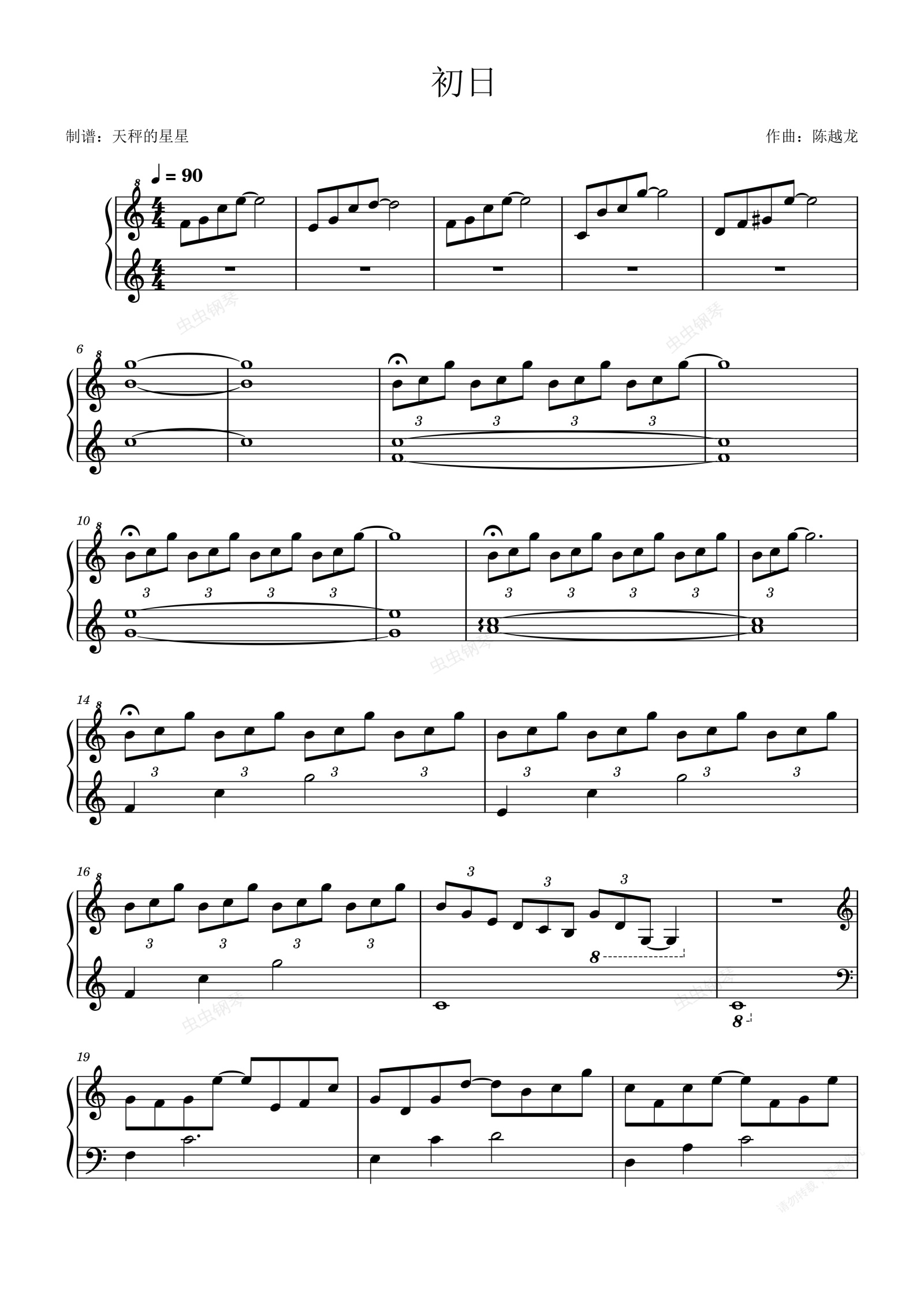 钢琴谱:初日-陈越龙 钢琴曲