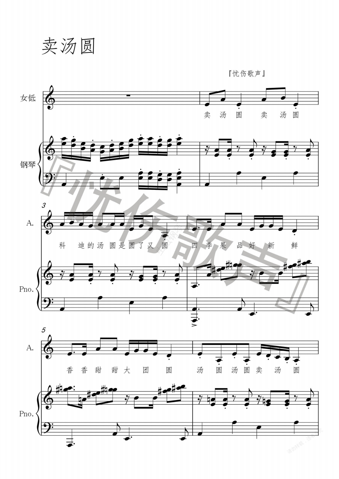 钢琴谱:卖汤圆(90年代广告歌)——『忧伤歌声』