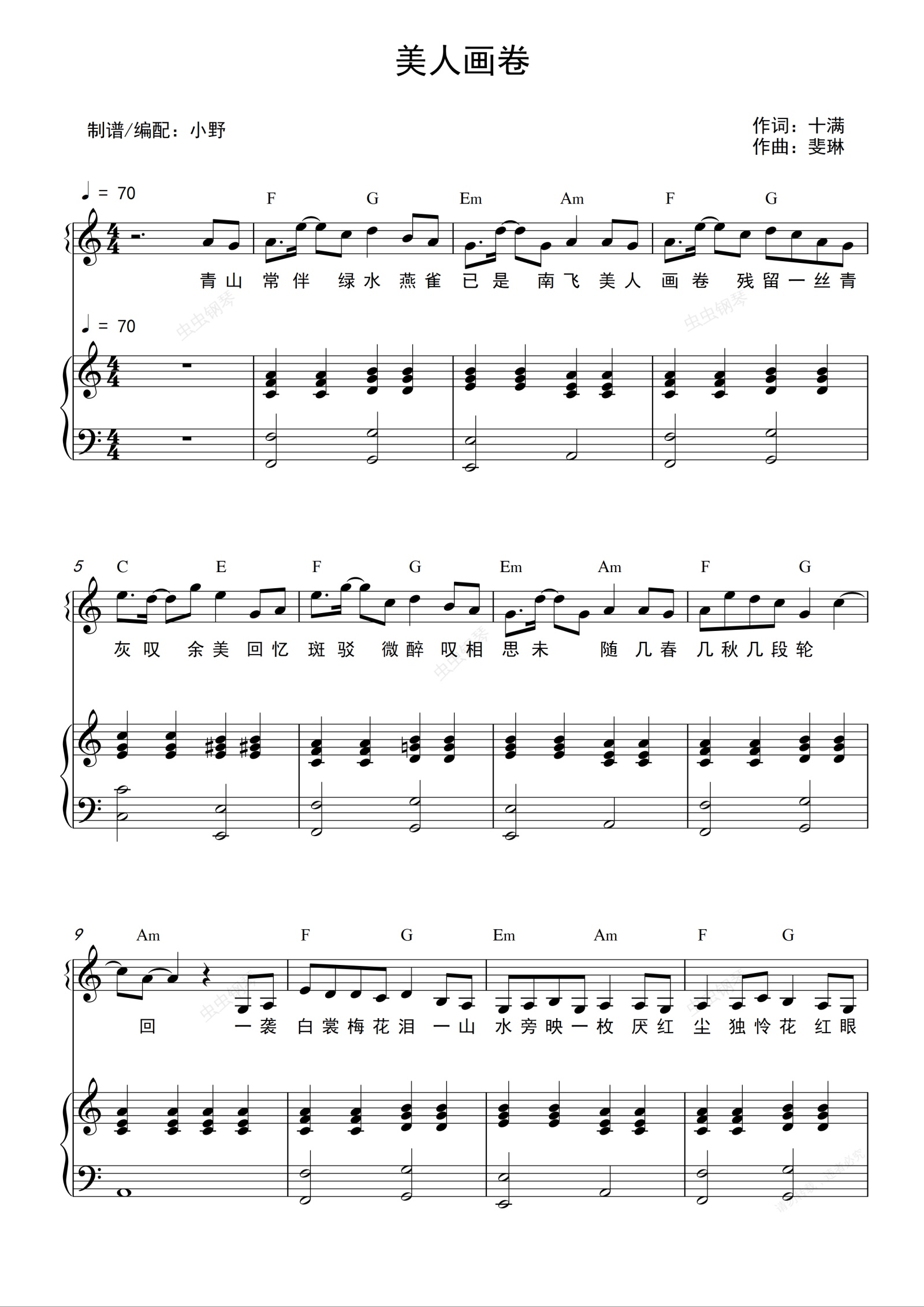 钢琴谱:美人画卷(a小调和弦弹唱版)