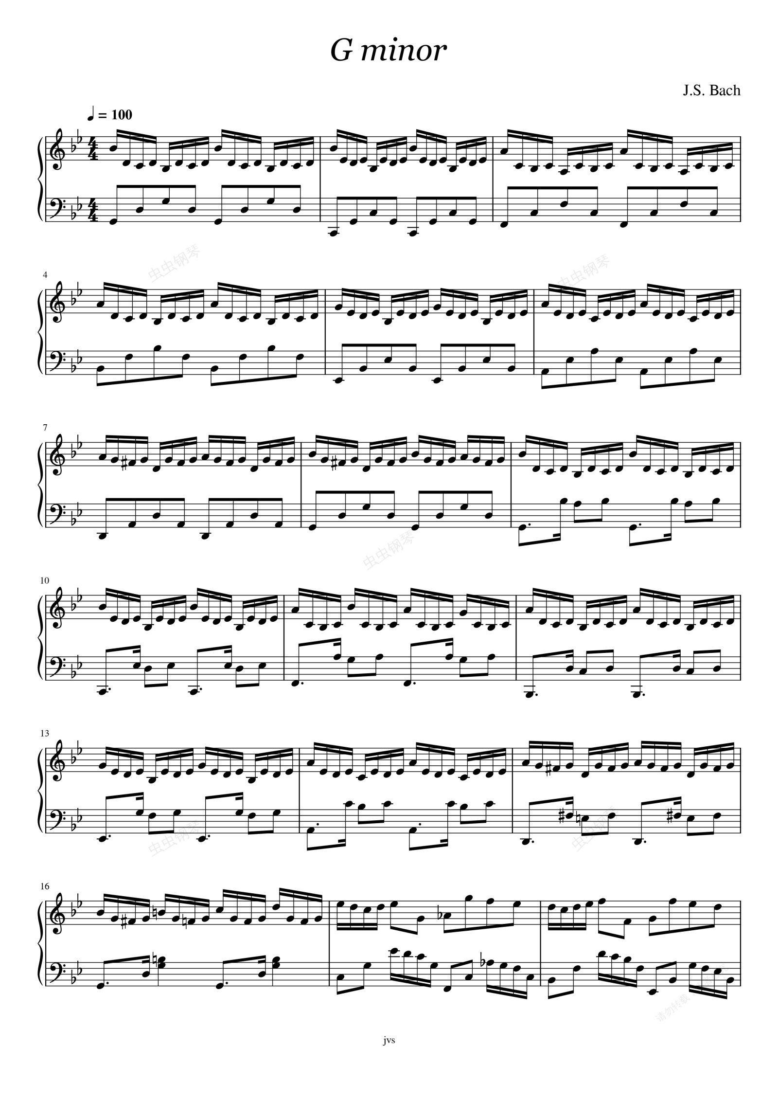 钢琴谱:巴赫小前奏曲与赋格 G Minor Bach