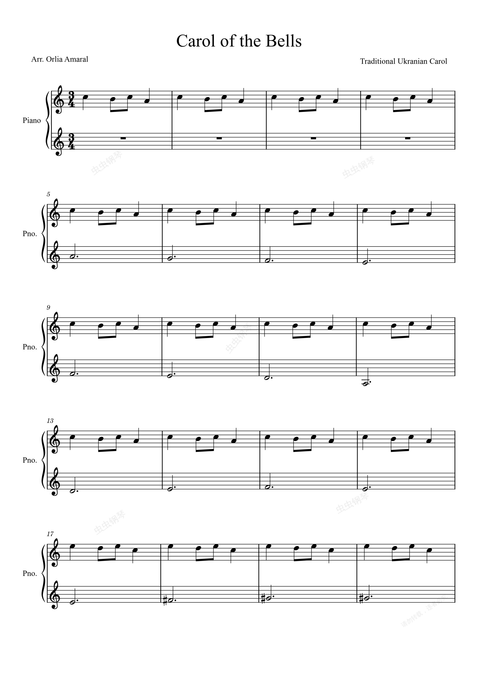 钢琴谱:Carol of the Bells 简易版 (easy piano)