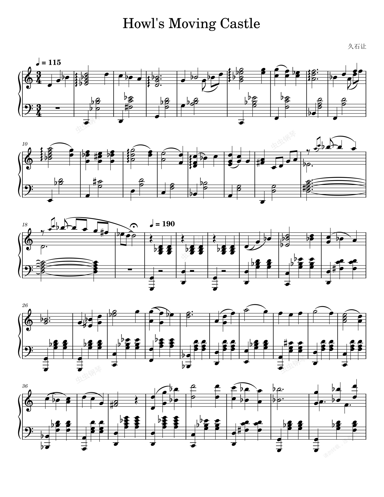钢琴谱:人生的旋转木马 Howls Moving Castle 哈尔的移动城堡 动画电影