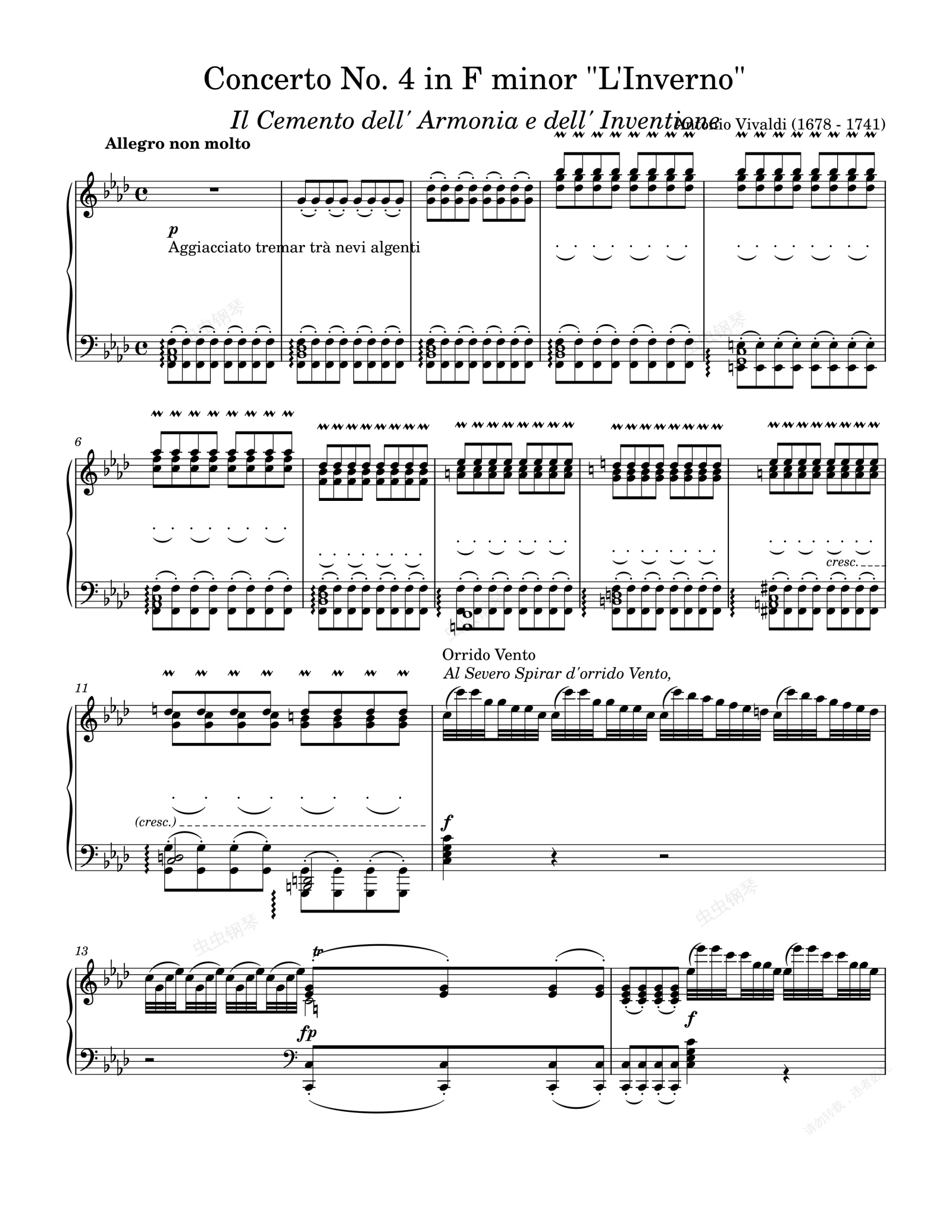 钢琴谱:Vivaldi - Winter 维瓦尔第-四季 冬 钢琴独奏版
