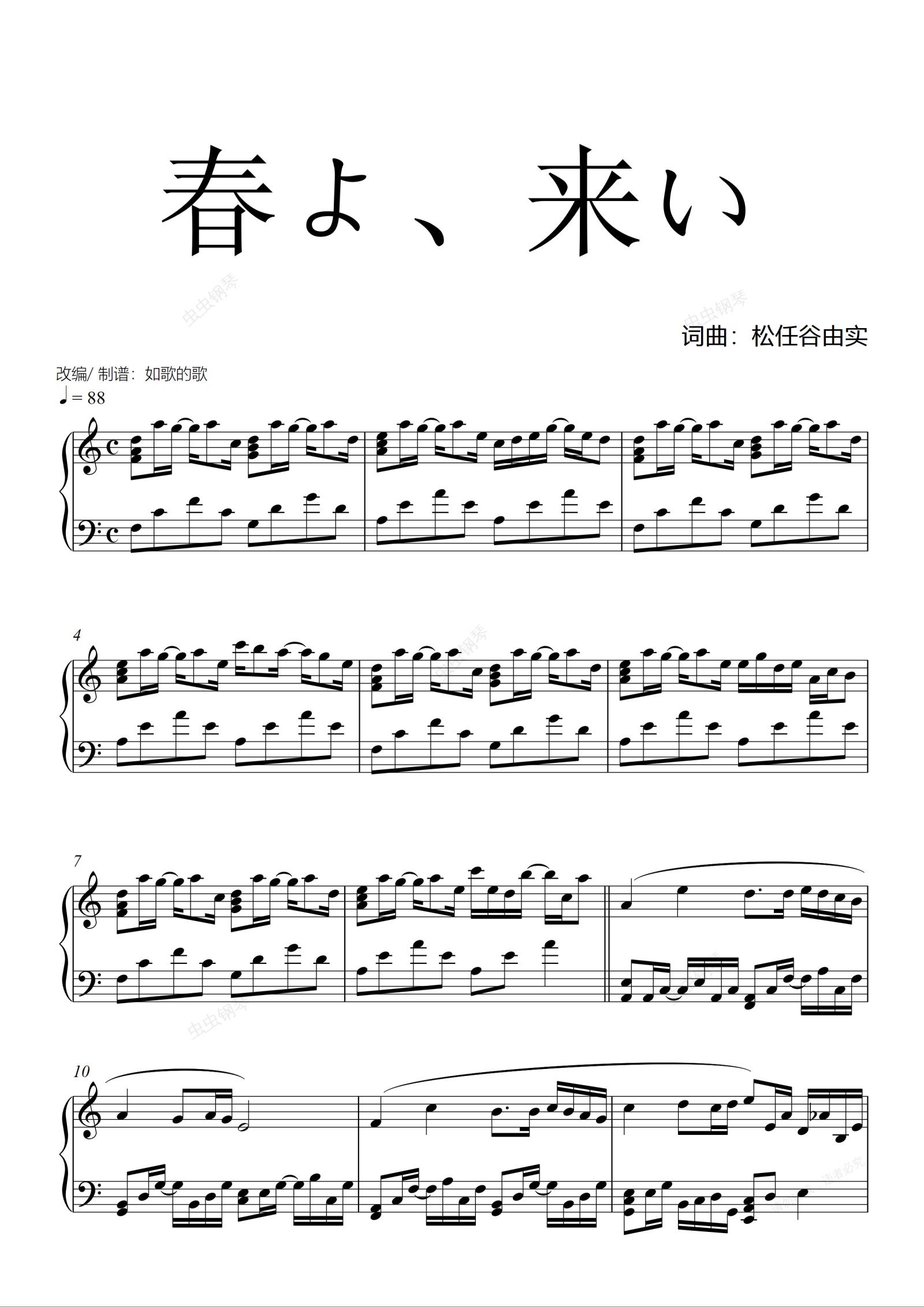 钢琴谱:春よ、来い-羽生结弦花滑音乐最代表春天的歌松任谷由实原调
