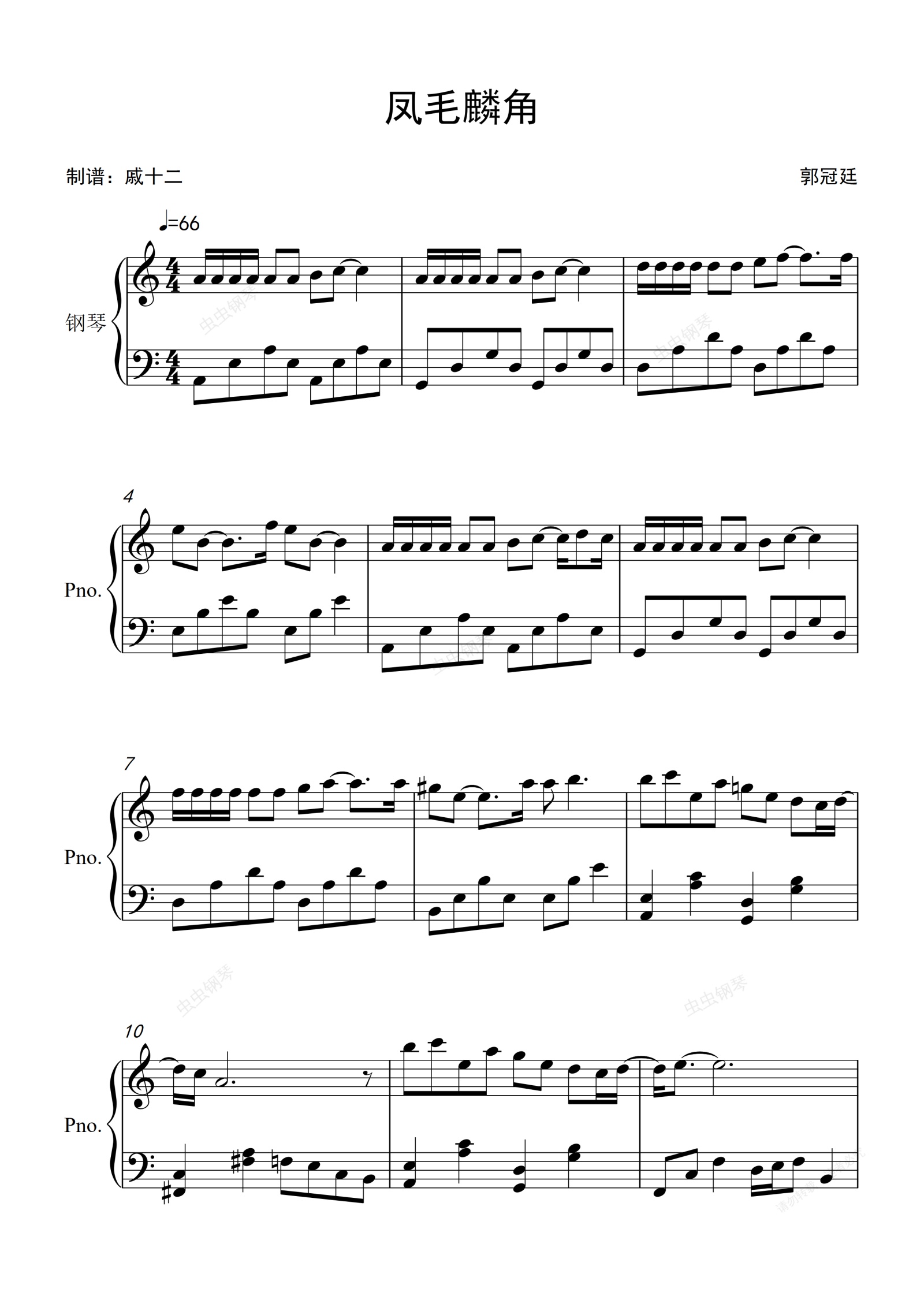 钢琴谱:凤毛麟角-C调简单版
