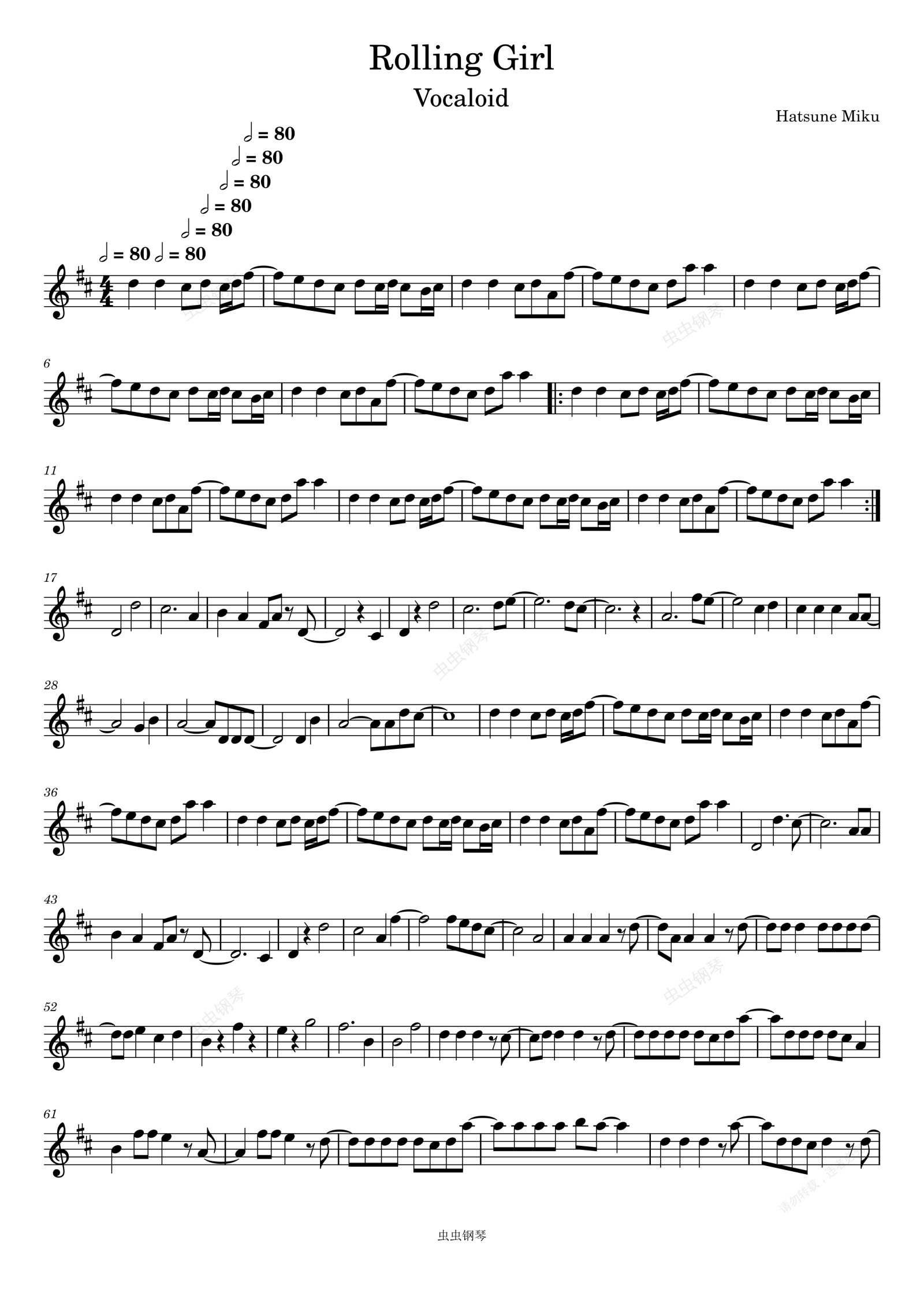 钢琴谱:ローリンガール-初音ミク