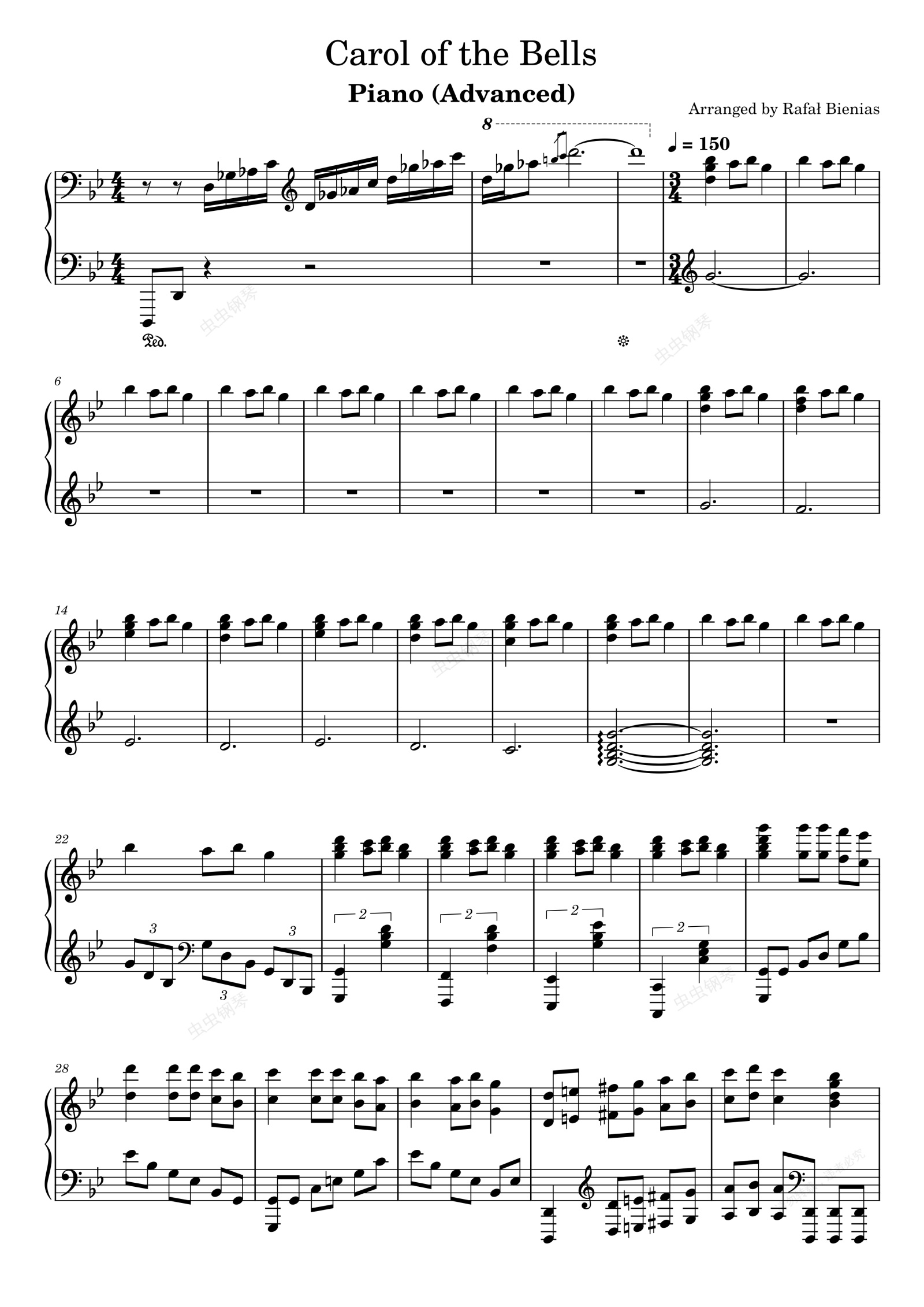 钢琴谱:圣诞歌曲 Carol of the Bells - Piano ( Advanced )
