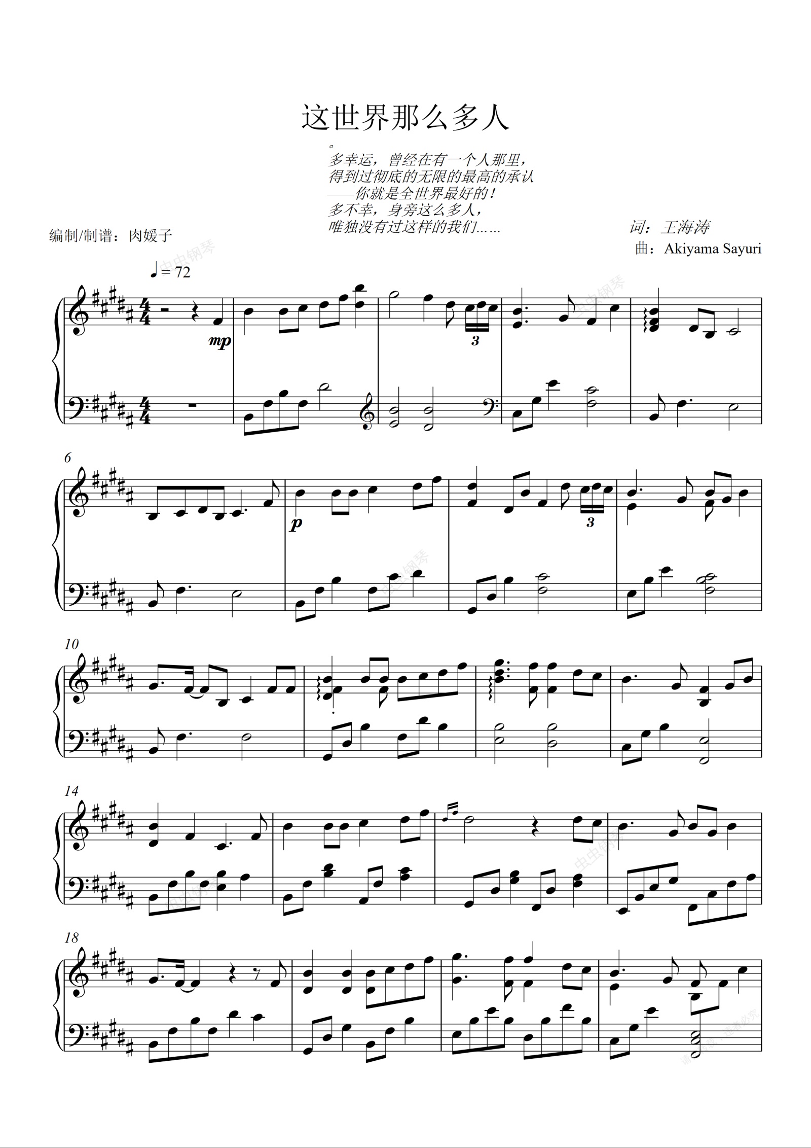 钢琴谱:这世界那么多人 -【极限还原 完美改编演奏版】