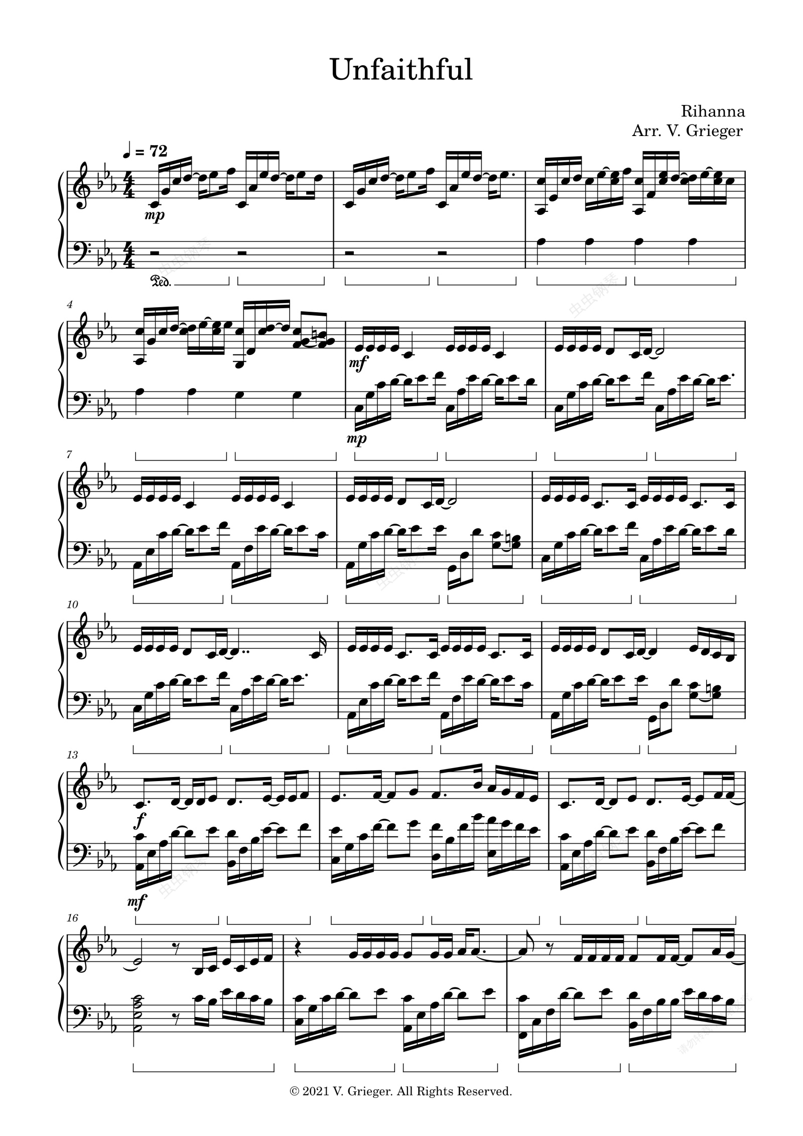 钢琴谱:蕾哈娜Rihanna-Unfaithful