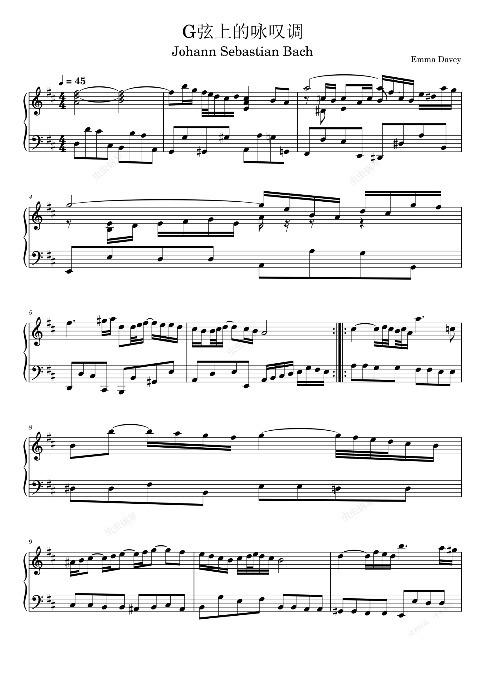钢琴谱:巴赫:G弦上的咏叹调 Air on the G String - Bach (Piano Solo)