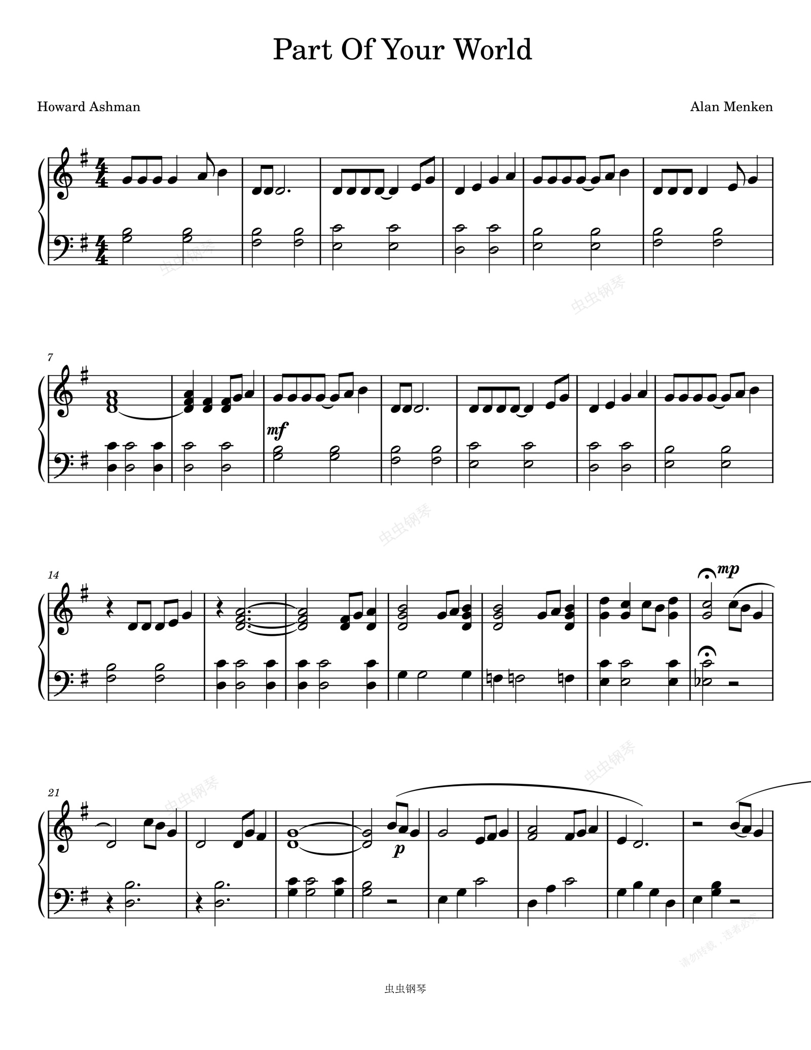 钢琴谱:小美人鱼 电影 Part Of Your World
