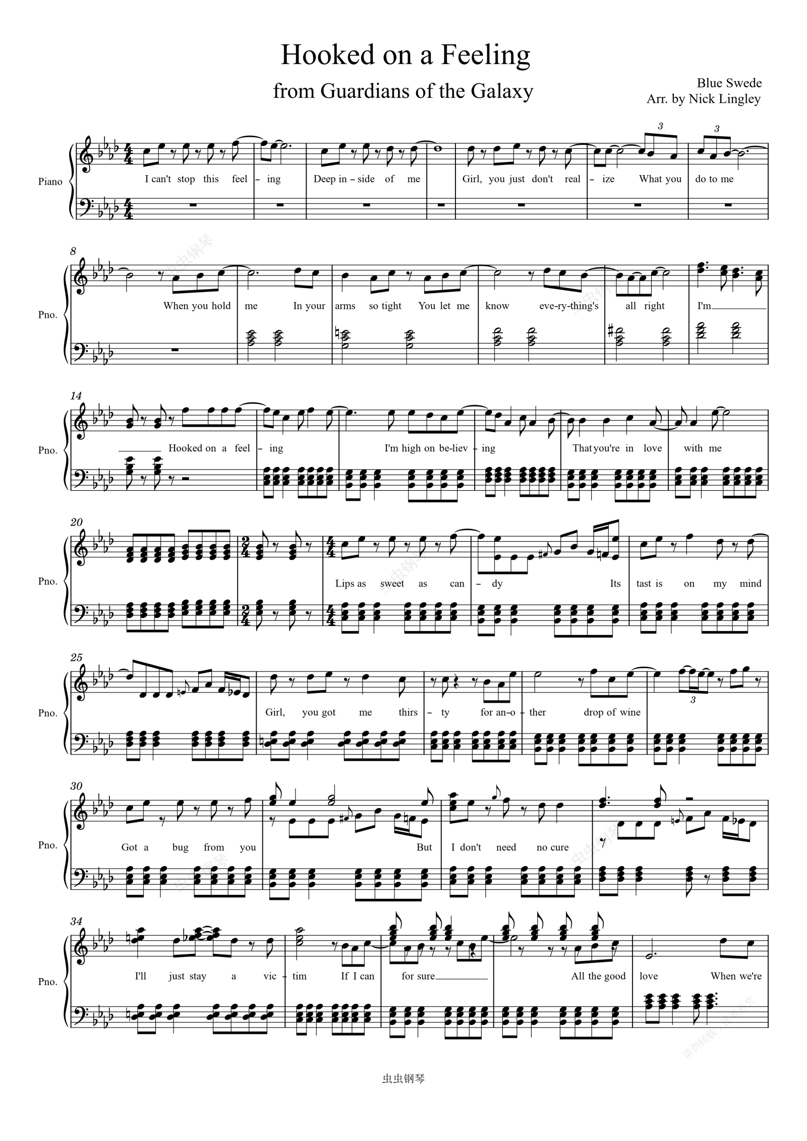 钢琴谱:Hooked on a Feeling-Blue Swede