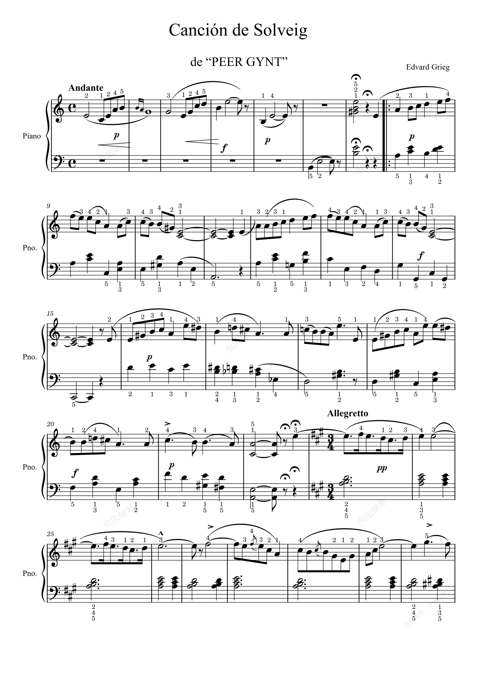 钢琴谱:La Canción de Solveig-Edvard Grieg
