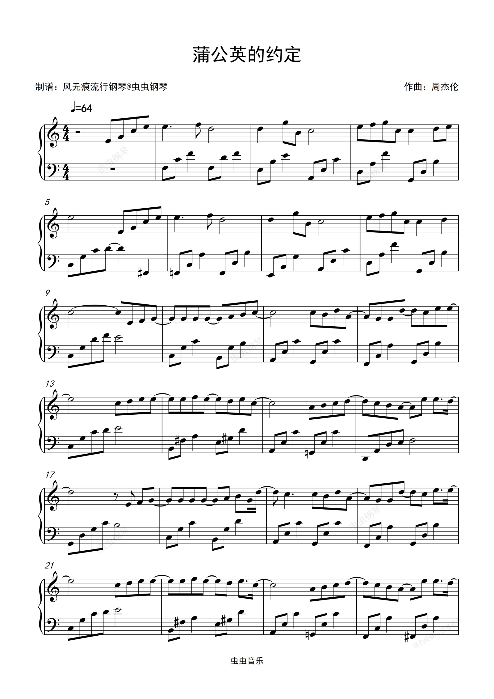 钢琴谱:蒲公英的约定-周杰伦〖简易动听〗
