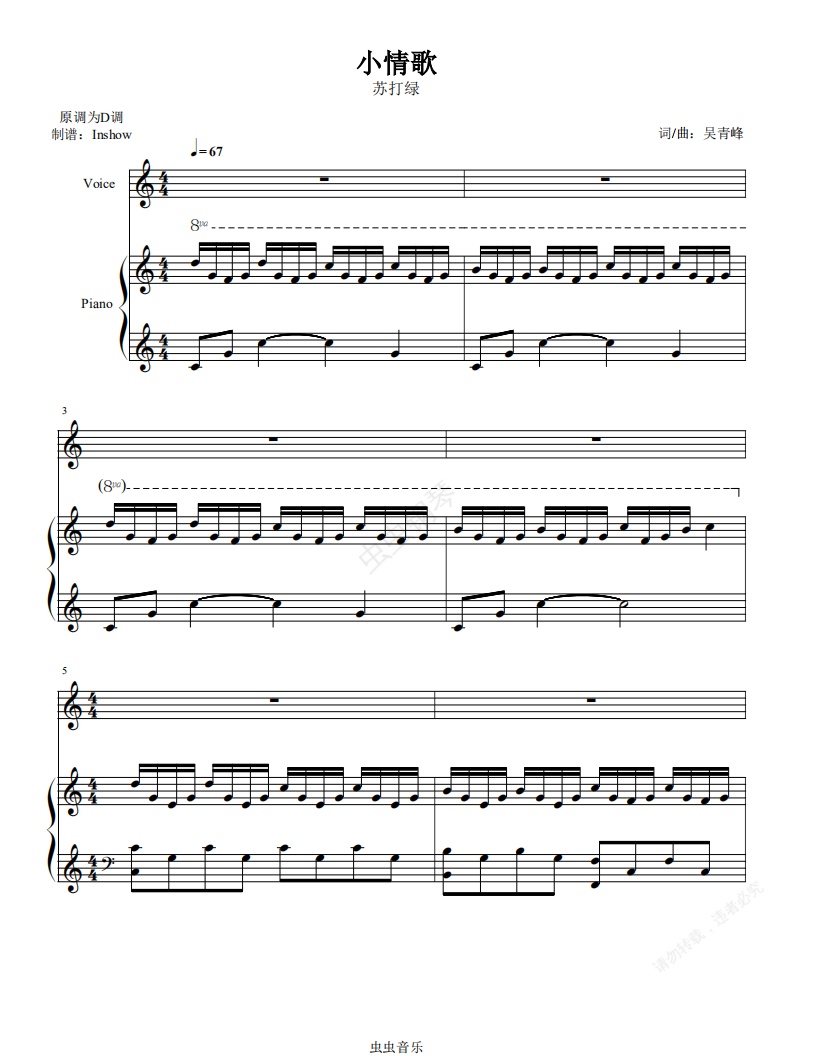 钢琴谱:苏打绿 - 小情歌【C调弹唱谱】