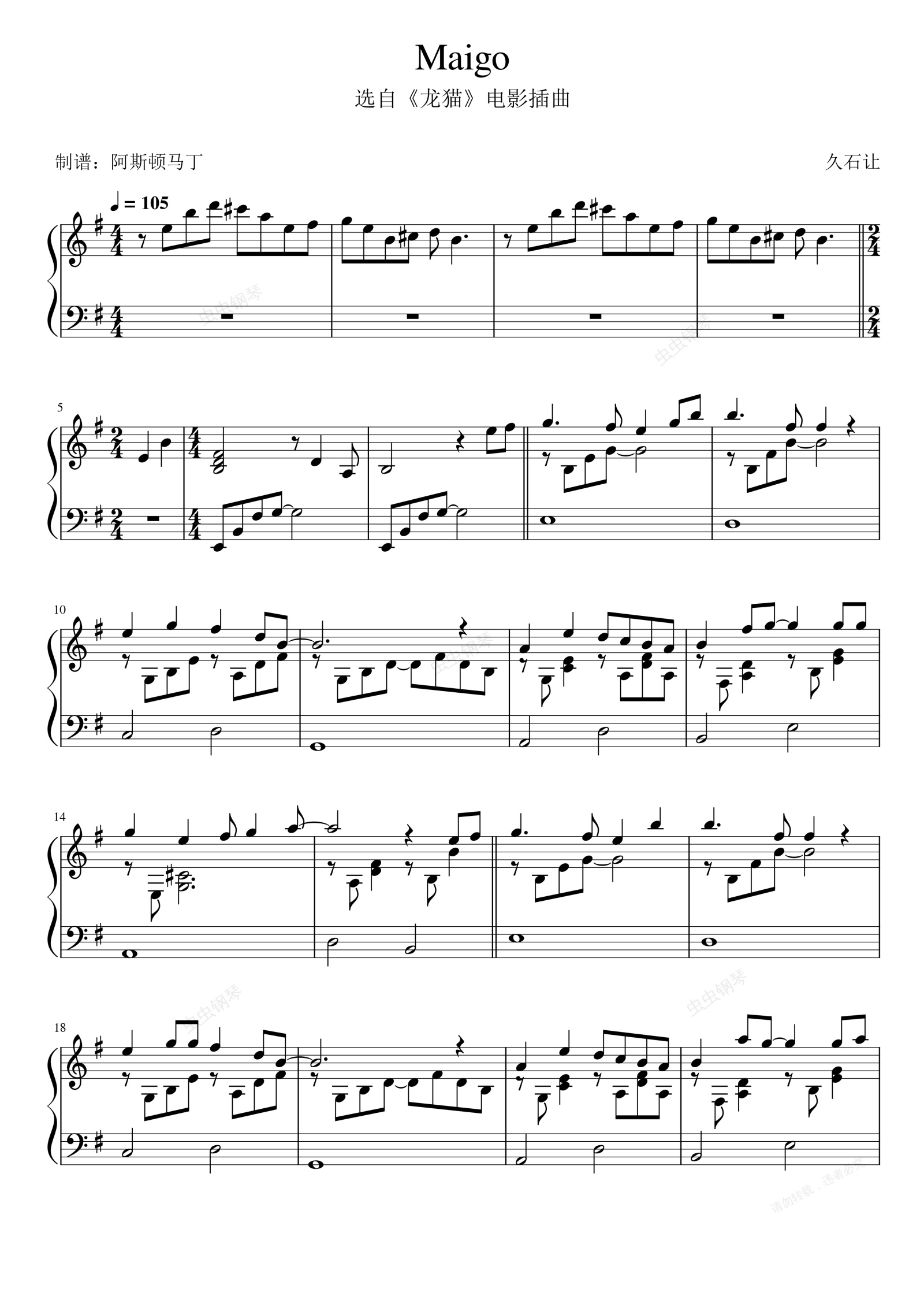 钢琴谱:Maigo-龙猫【高度还原】