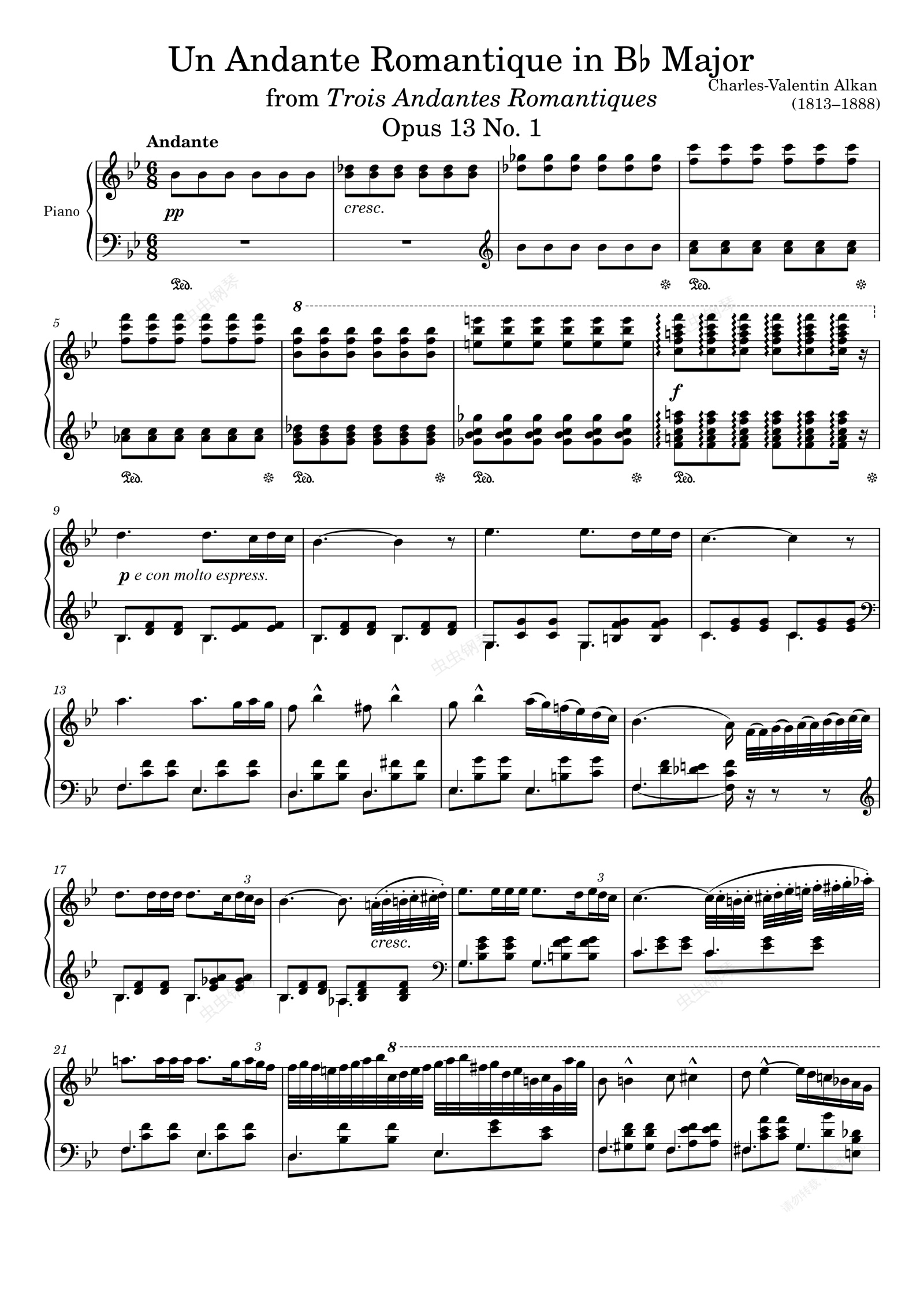 钢琴谱:Un Andante Romantique Opus 13 No. 1 in B♭ Major