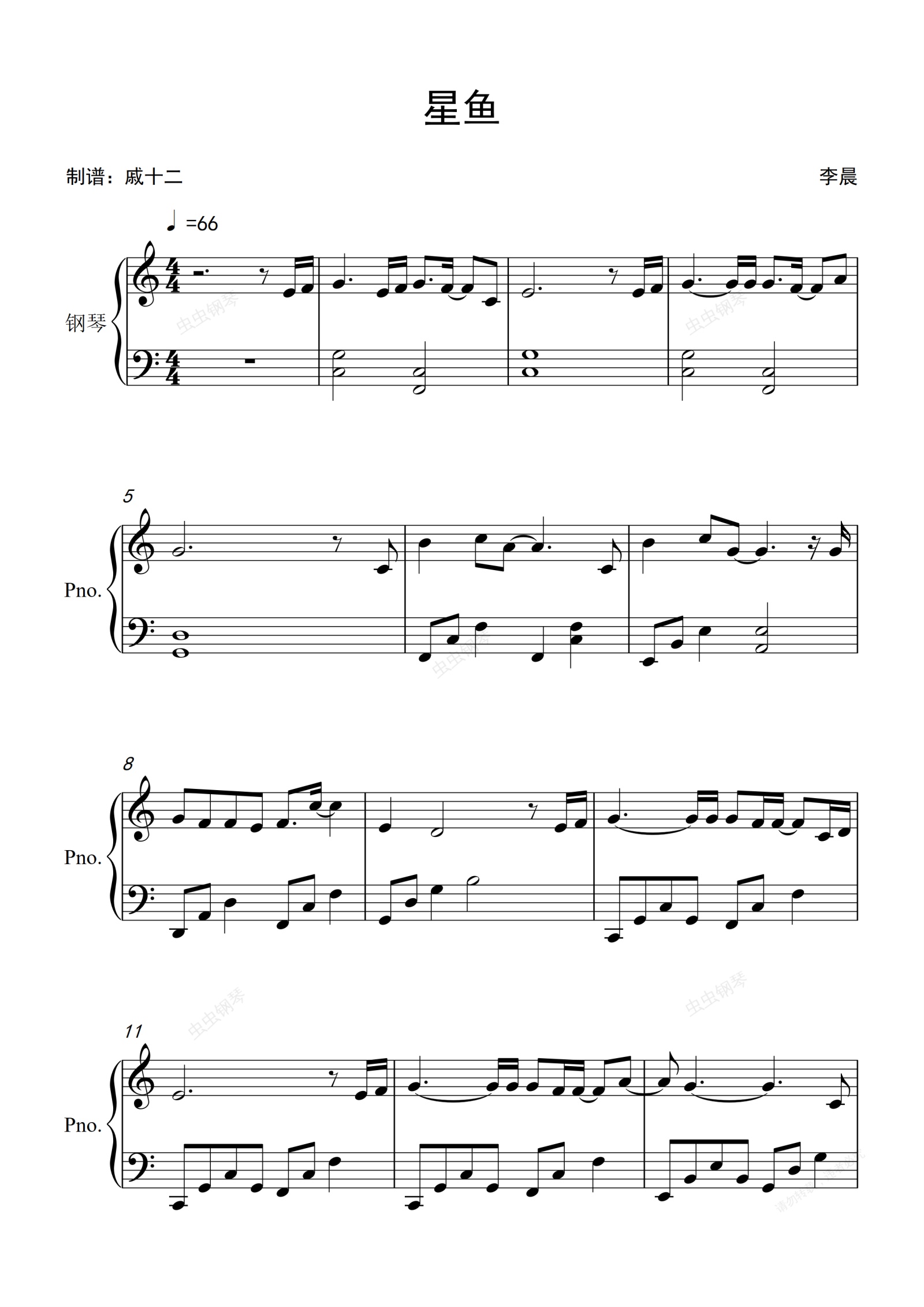 钢琴谱:星鱼-C调简单版 星鱼 VR动画