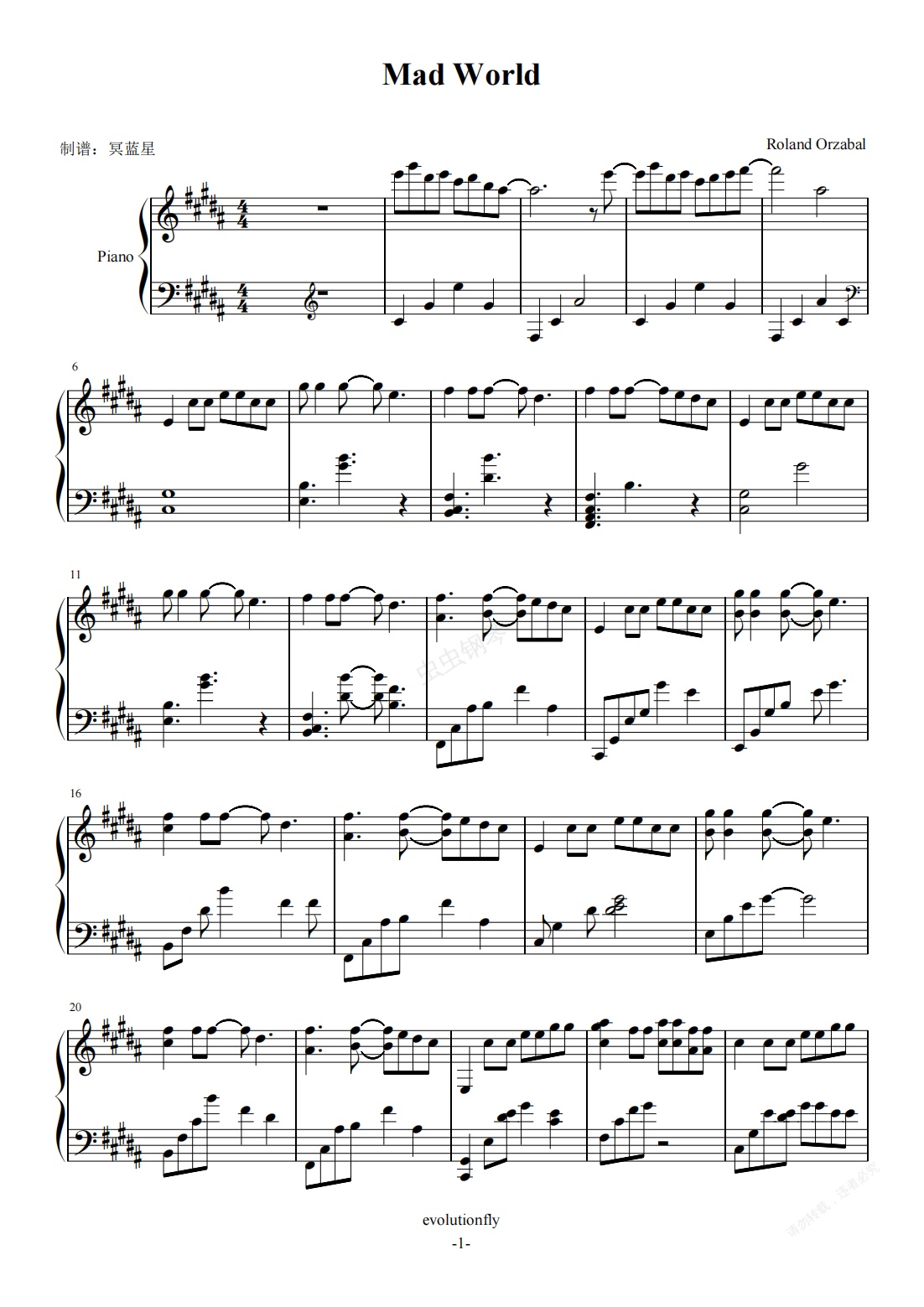 钢琴谱:Mad world-William Joseph