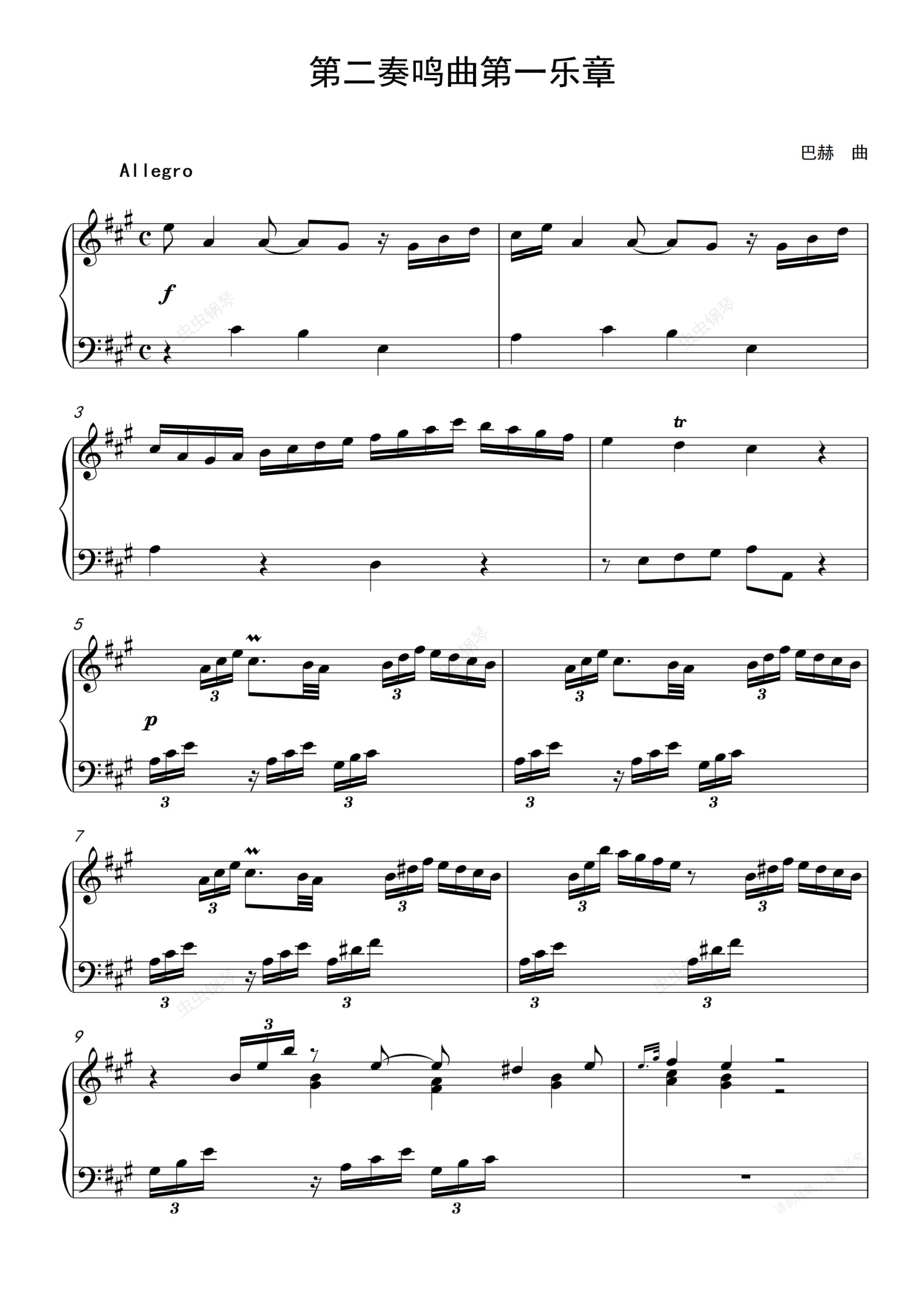 钢琴谱:6级-大型乐曲-第二奏鸣曲第一乐章(巴赫)