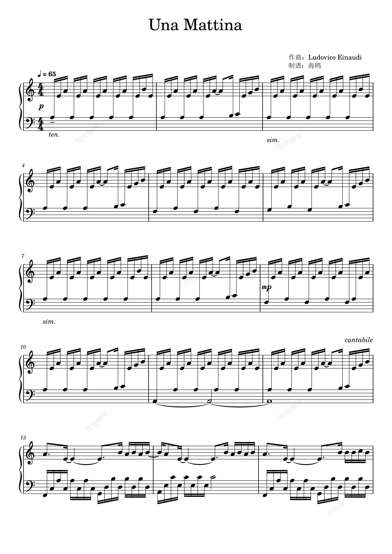 钢琴谱:Una Mattina-Ludovico Einaudi 电影《触不可及》插曲
