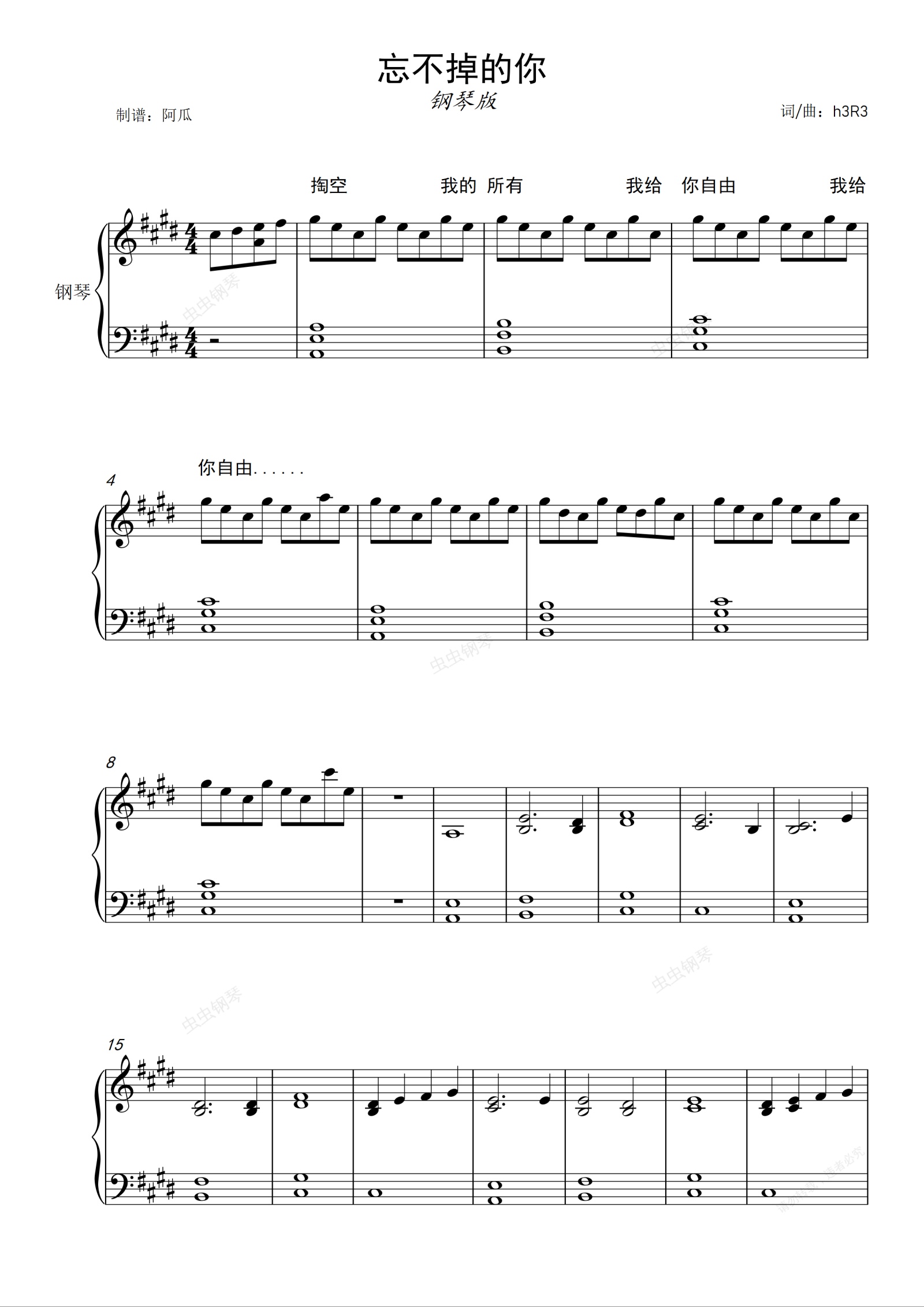 钢琴谱:忘不掉的你(钢琴版)-弹唱谱