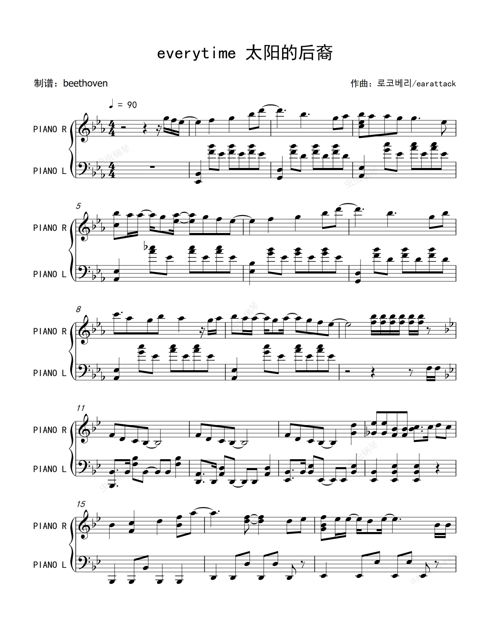 钢琴谱:Everytime-太阳的后裔-插曲