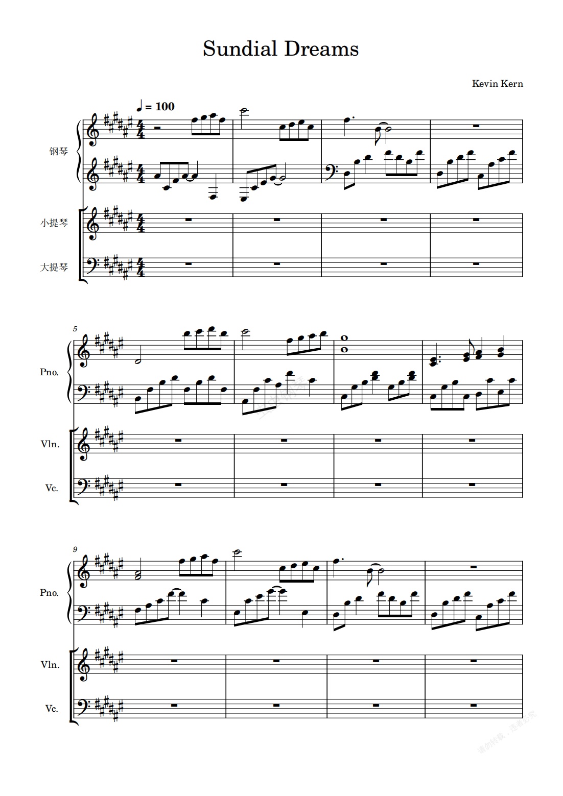 钢琴谱:Sundial Dreams曲谱(三种乐器)