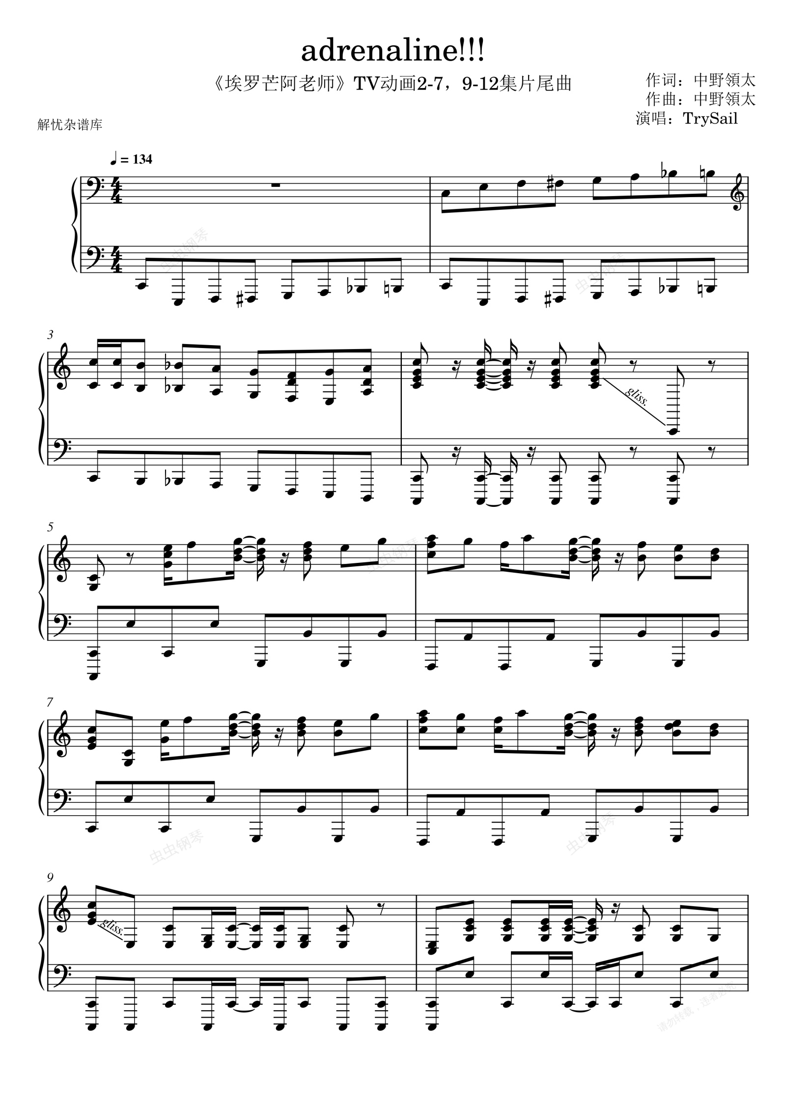 钢琴谱:adrenaline!!!《埃罗芒阿老师》TV动画2-12集片尾曲
