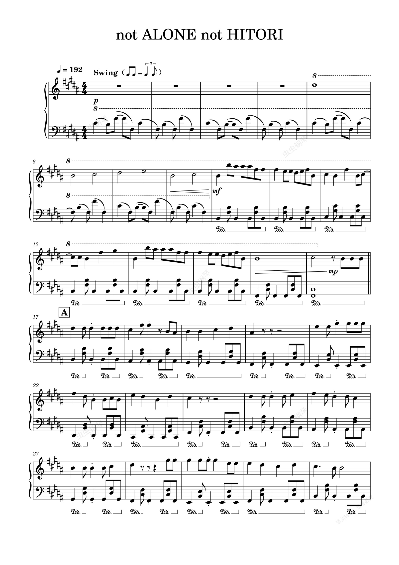 钢琴谱:【钢琴改编】Aqours - not ALONE not HITORI