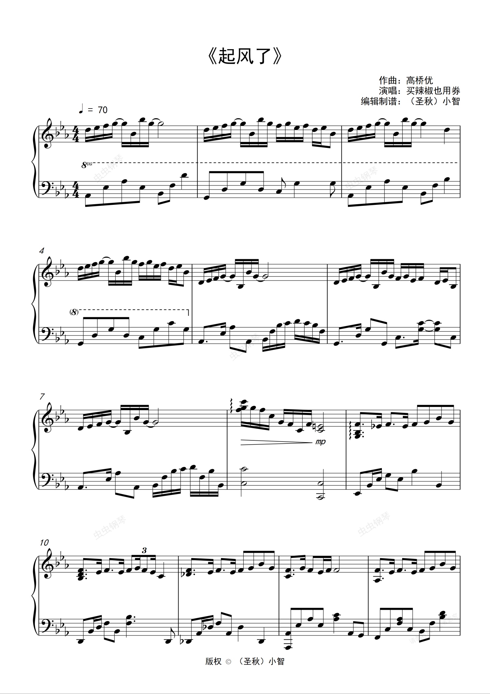 钢琴谱:《起风了》高度还原演奏版(难度)