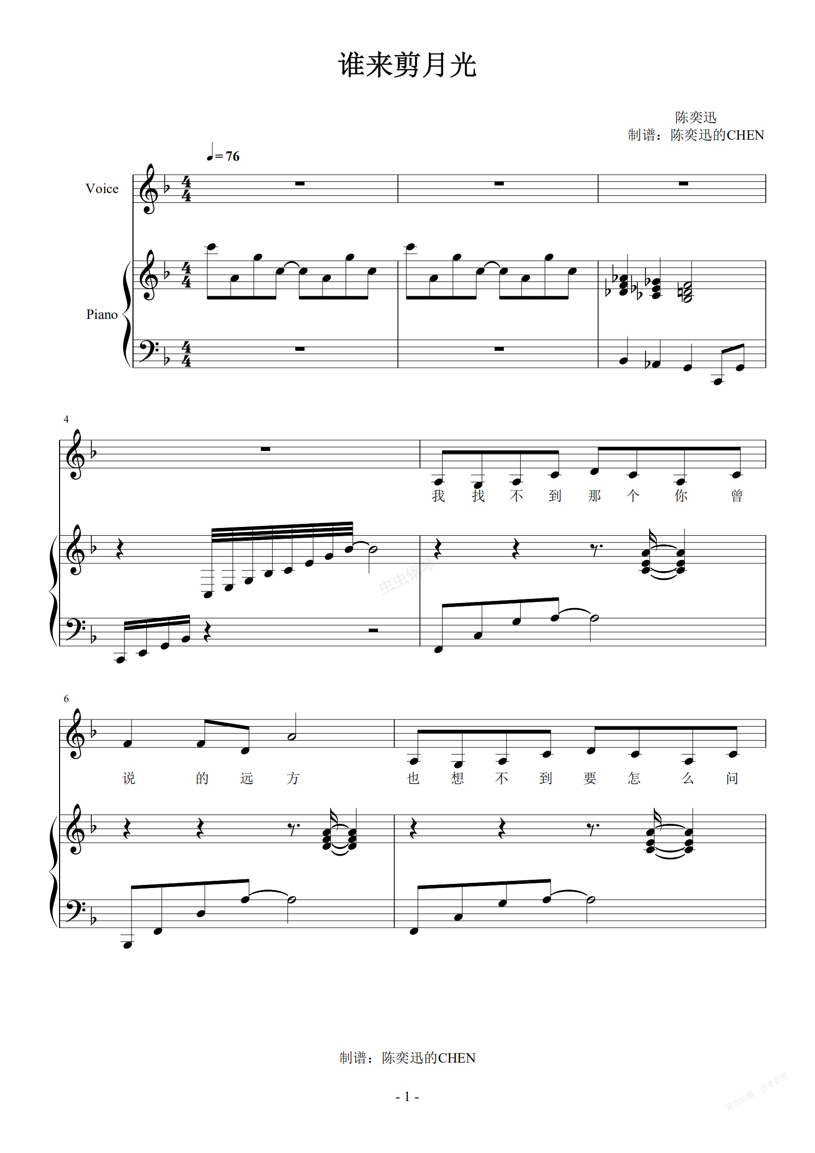 钢琴谱:谁来剪月光 完美弹唱谱【附歌词】【女声调】