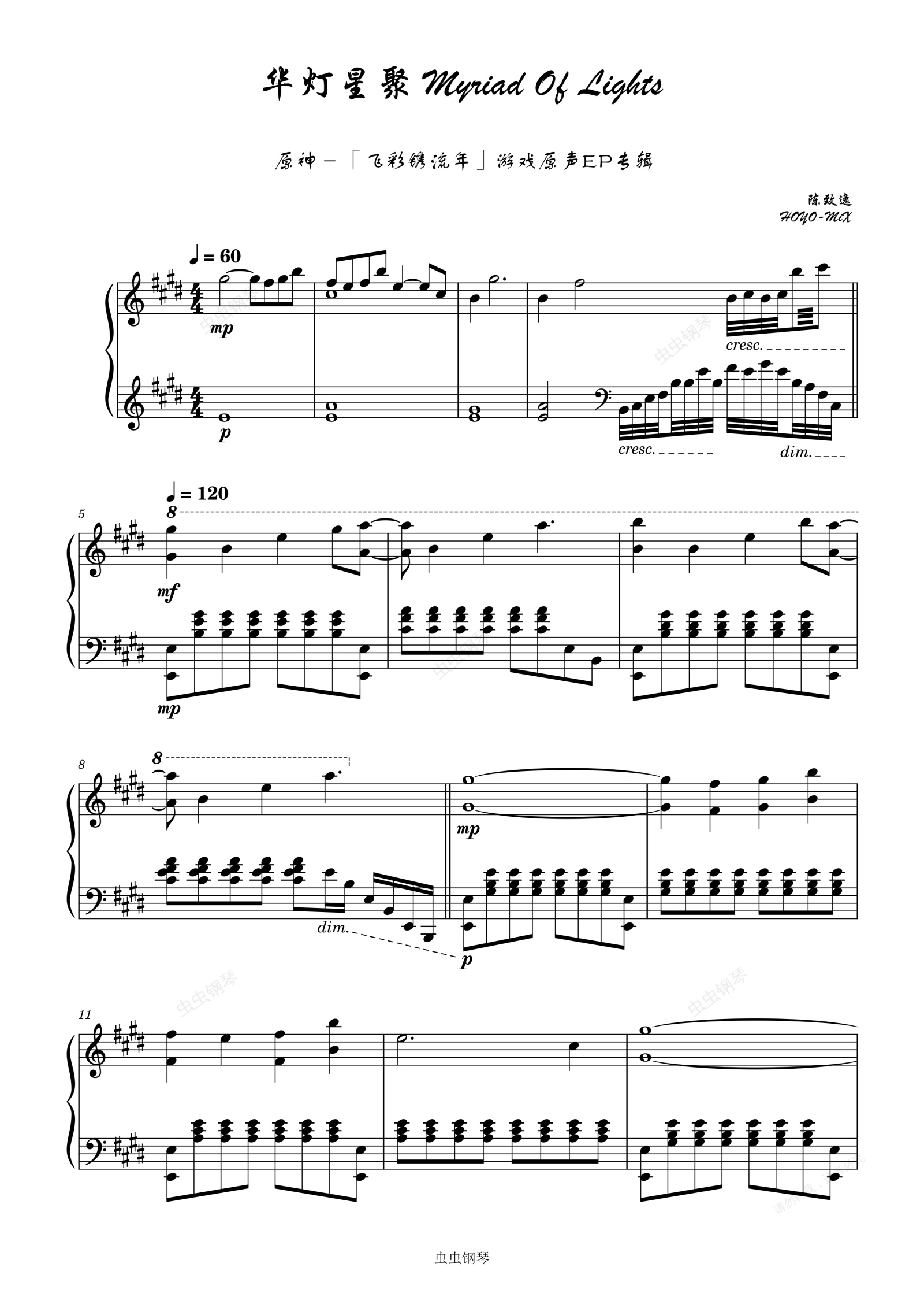 钢琴谱:华灯星聚 Myriad Of Lights《原神 - 「飞彩镌流年」游戏原声EP专辑》