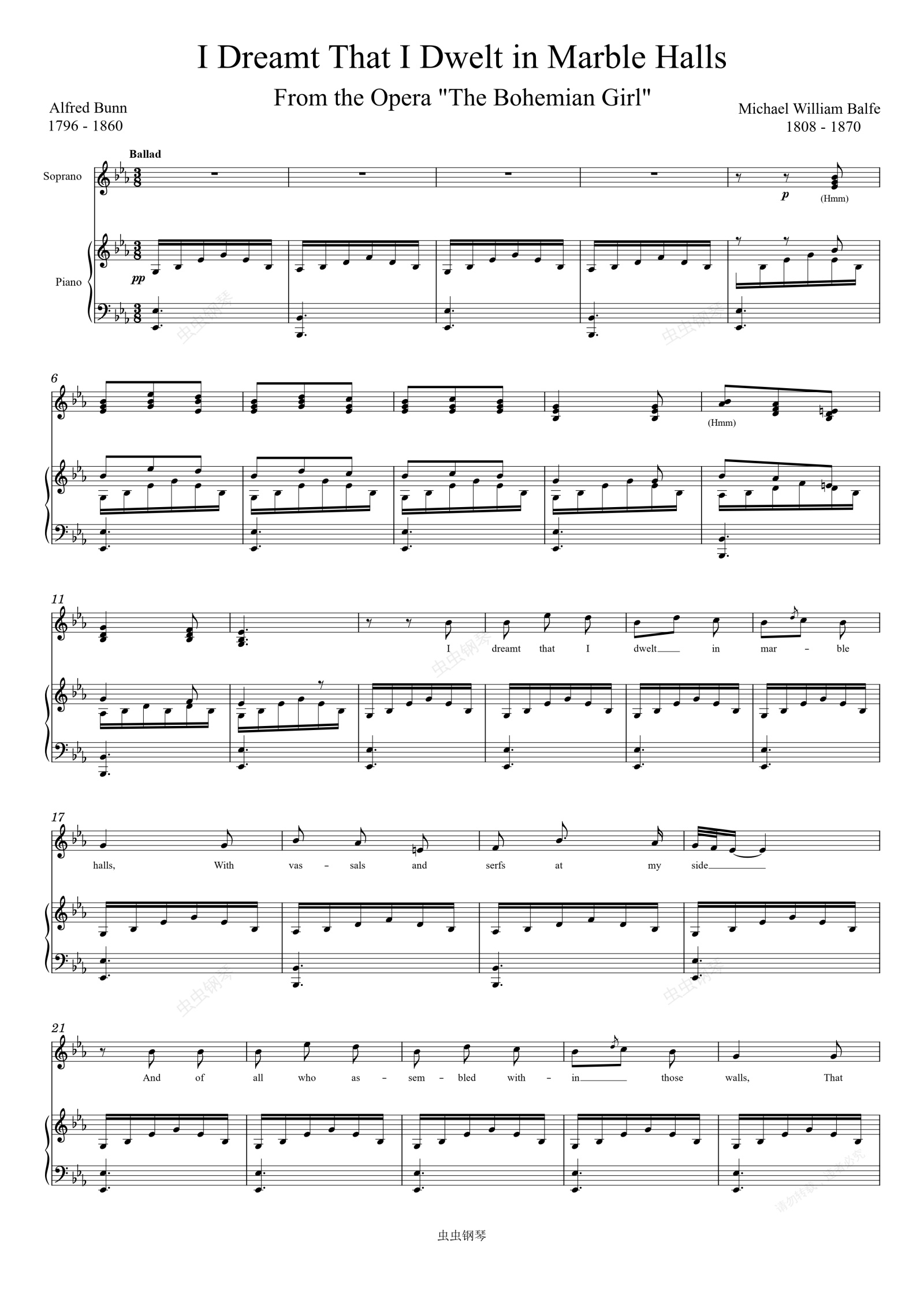 钢琴谱:I Dreamt That I Dwelt in Marble Halls (Soprano solo with piano)