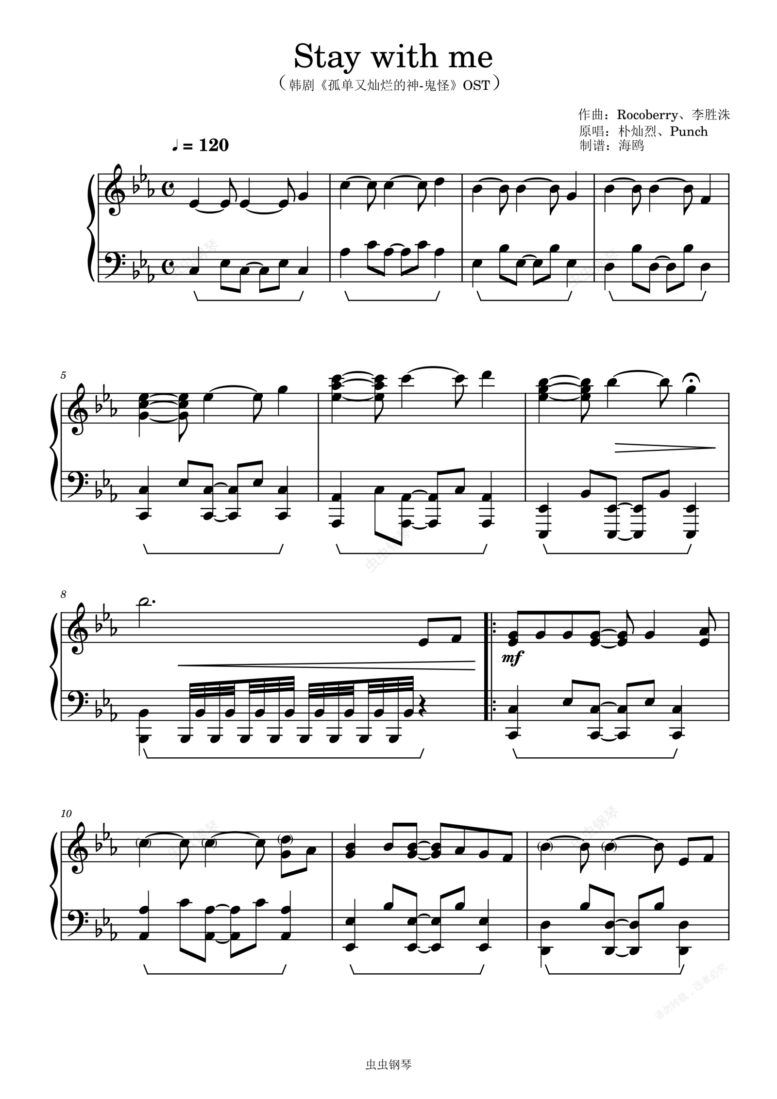 钢琴谱:Stay with me-韩剧《孤单又灿烂的神-鬼怪》OST