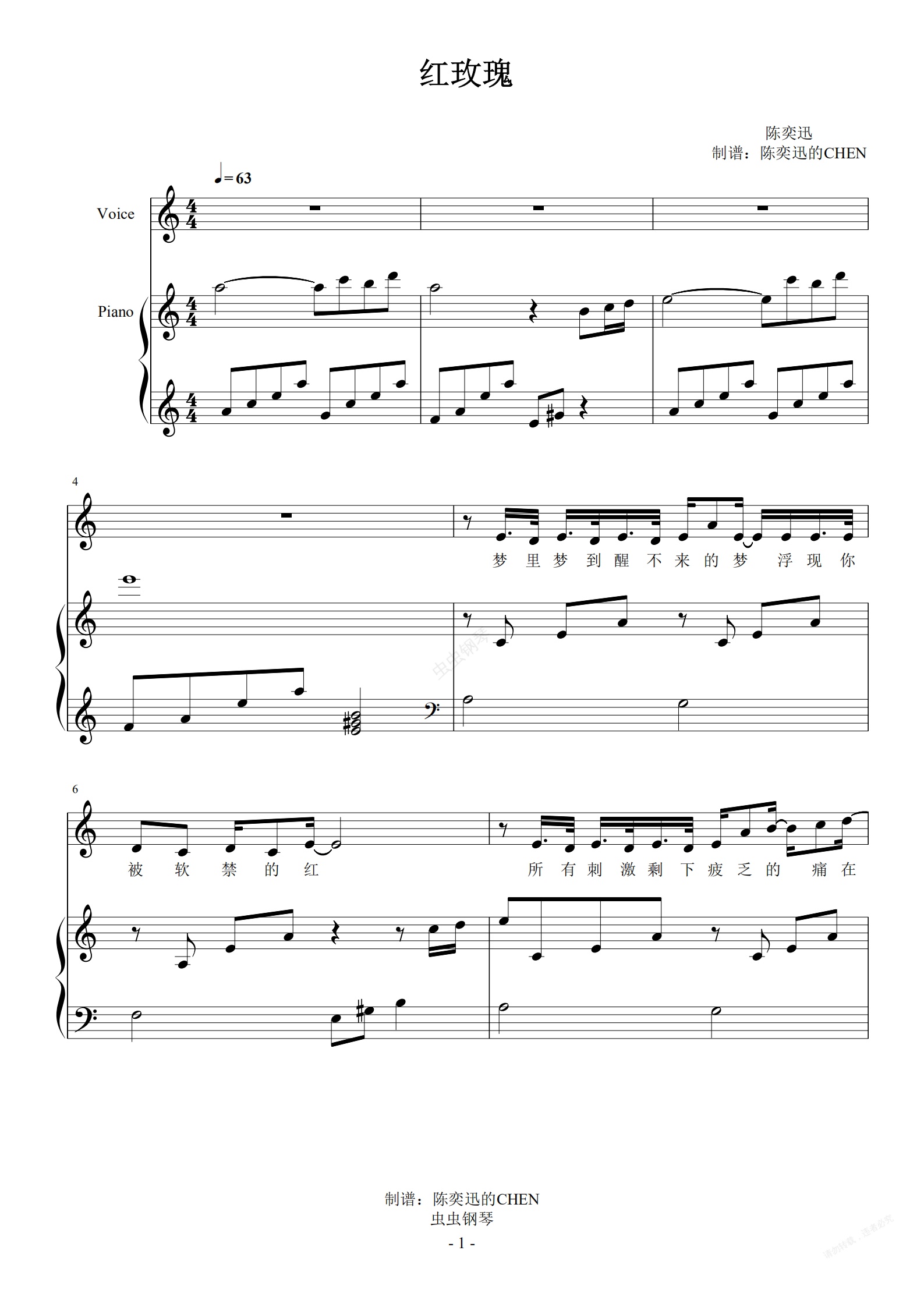 钢琴谱:红玫瑰 C调完美弹唱谱【附歌词】