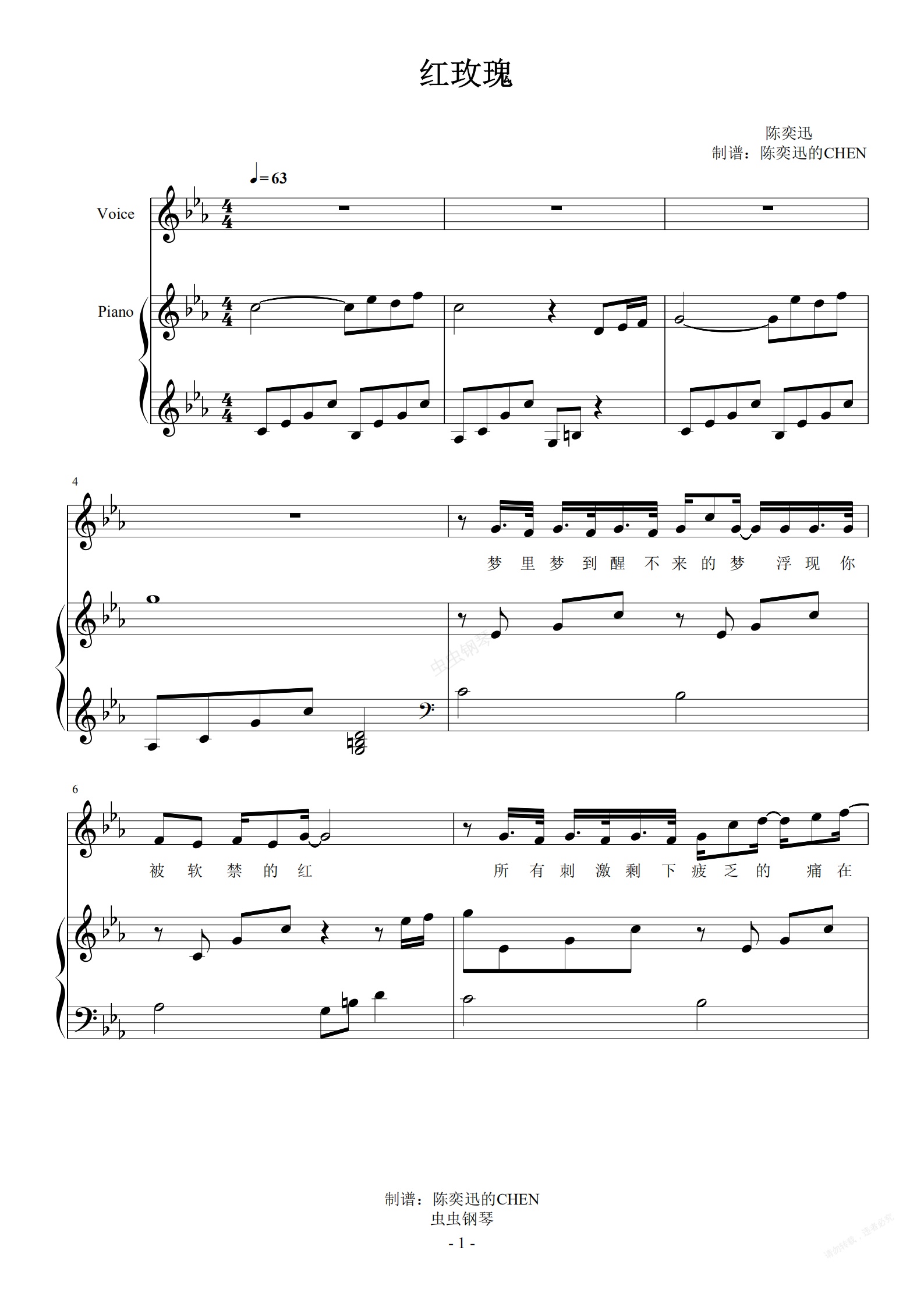 钢琴谱:红玫瑰 完美弹唱谱 【女生版】【附歌词】